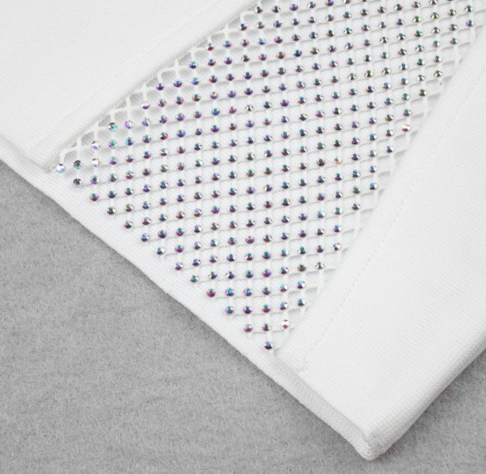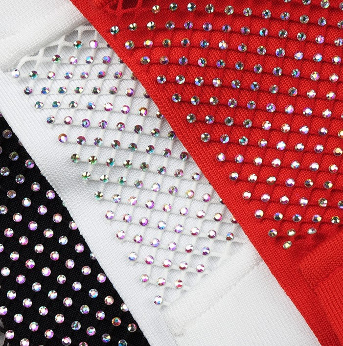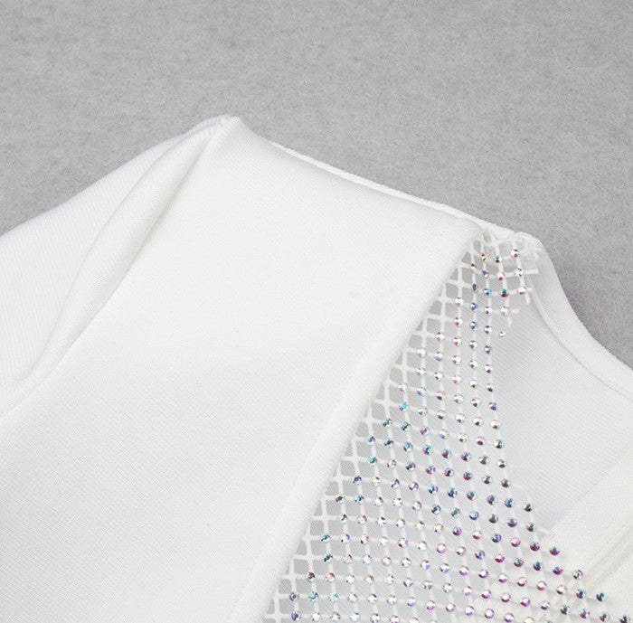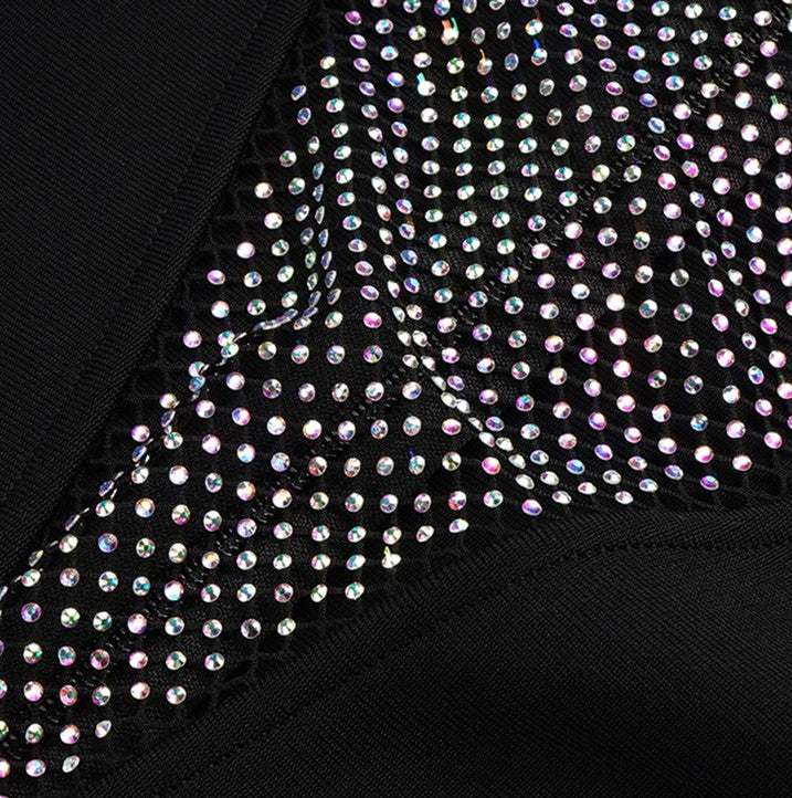 Indulge in the seductive elegance of the DOLLY V-Neck Body Hug Dress. The plunging neckline and body-hugging fit exude a sensual allure, while rhinestone details add a touch of luxury. Perfect for a glamorous night out.(v)