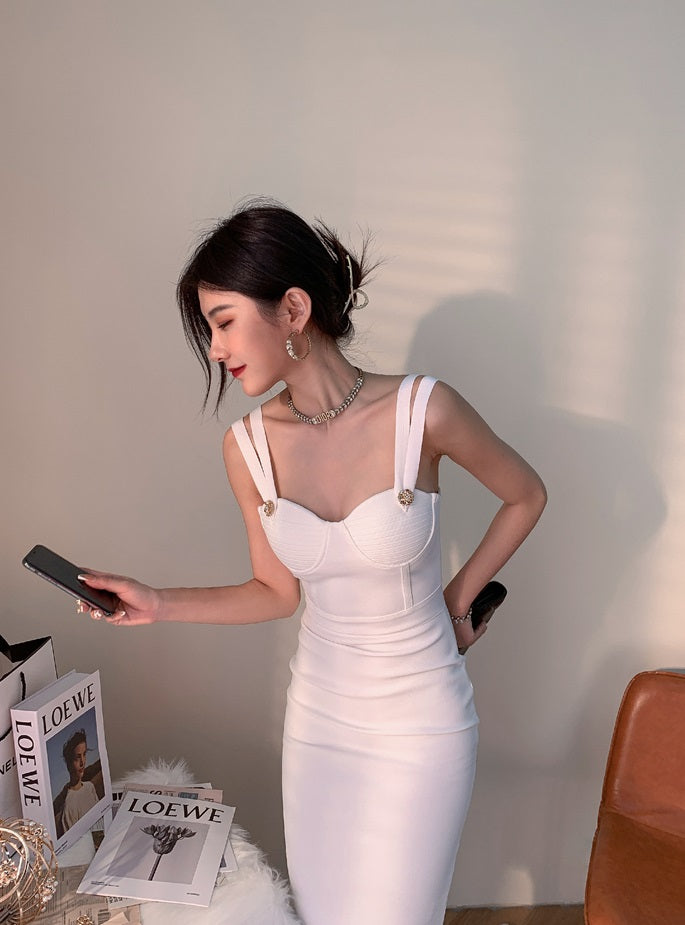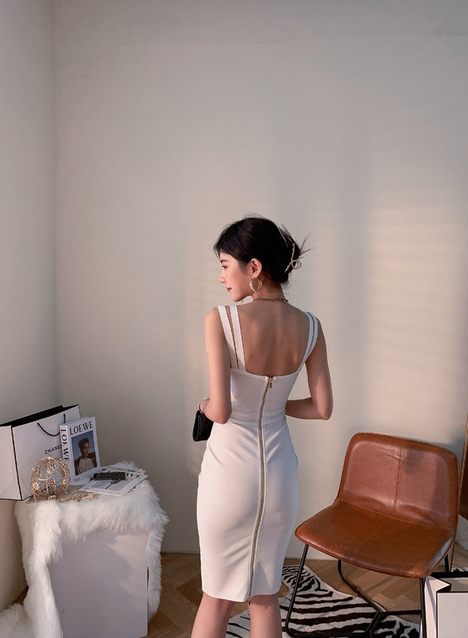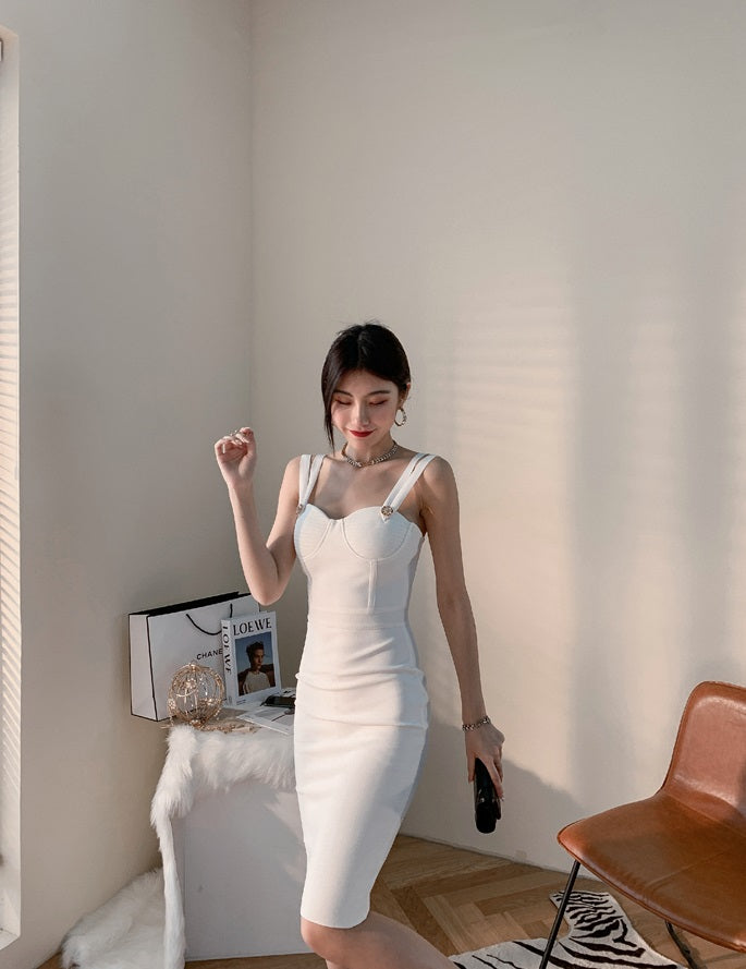 DOLLY Elegant V-Neck Sleeveless Tube Top Body Hug Midi Party Dress-KASIE