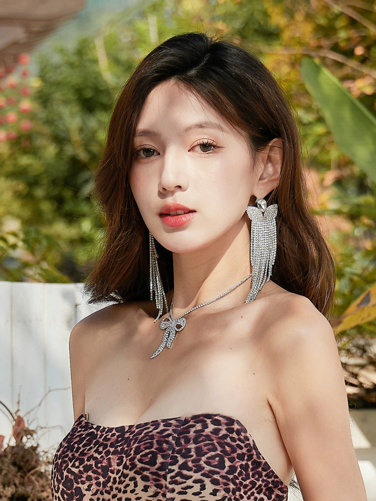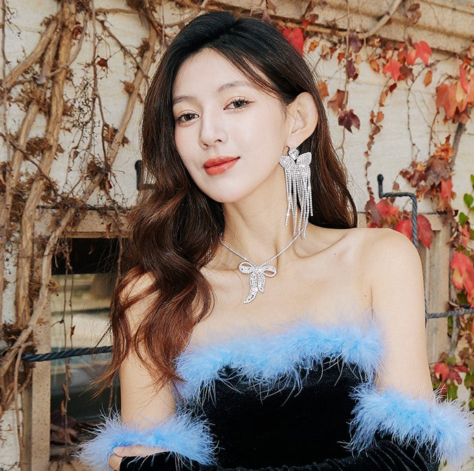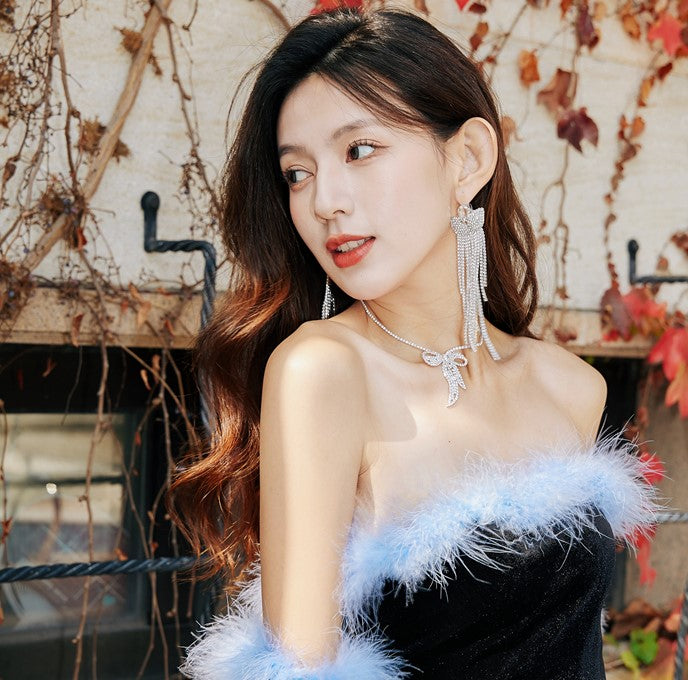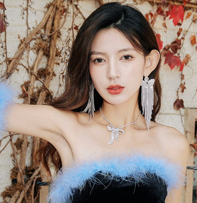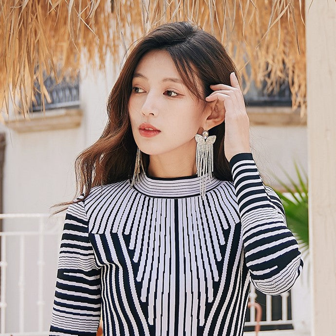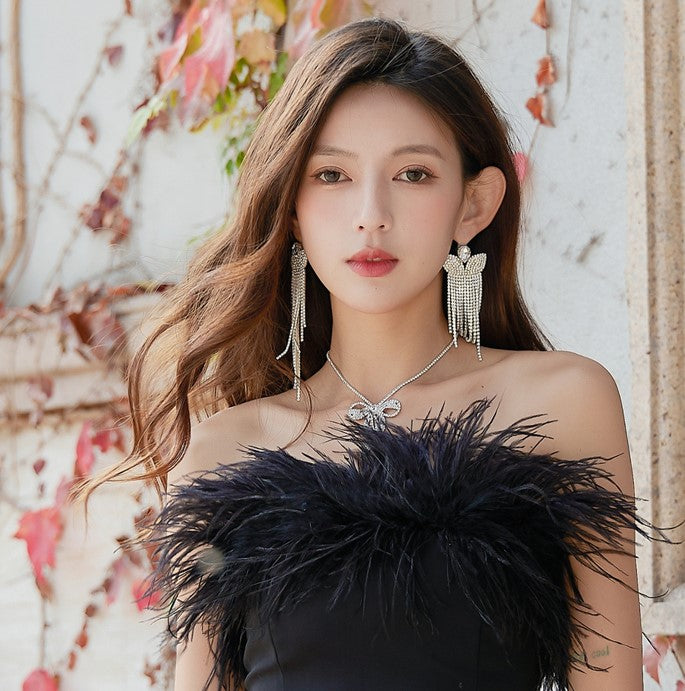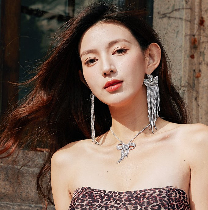 DOLLY Elegant White Diamond Tassel Earring-NONNA