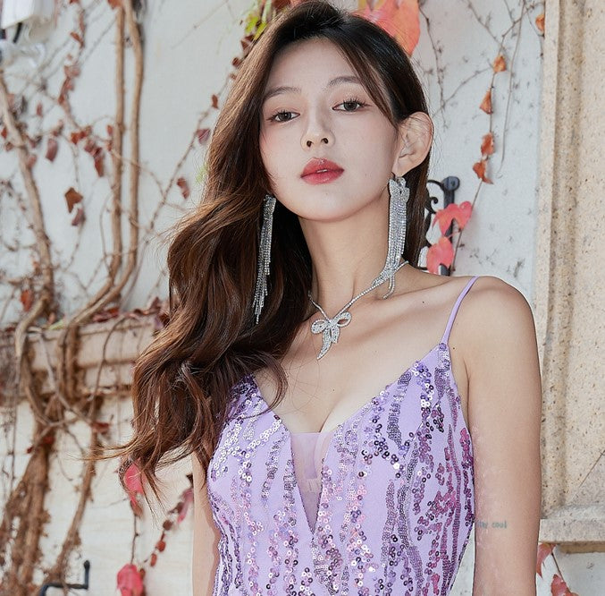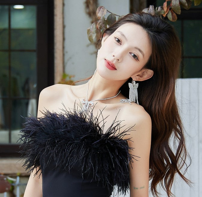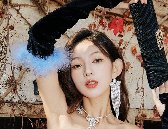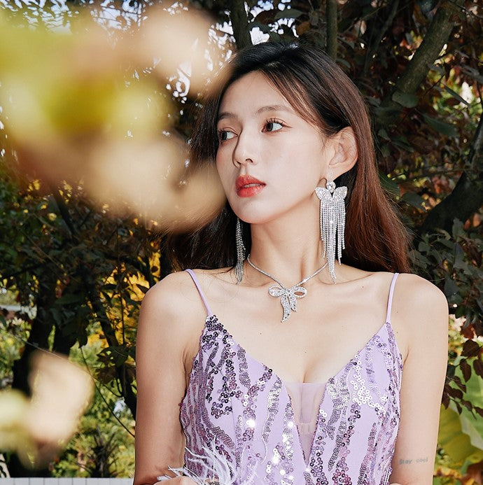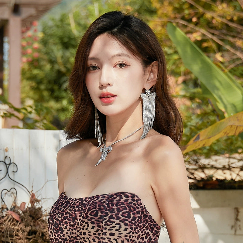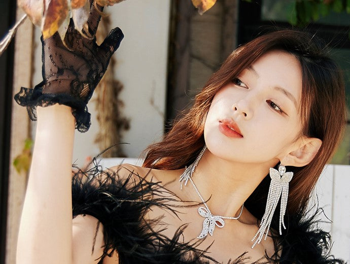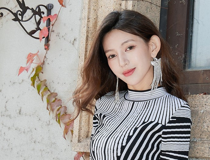 DOLLY Elegant White Diamond Tassel Earring-NONNA