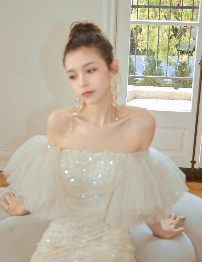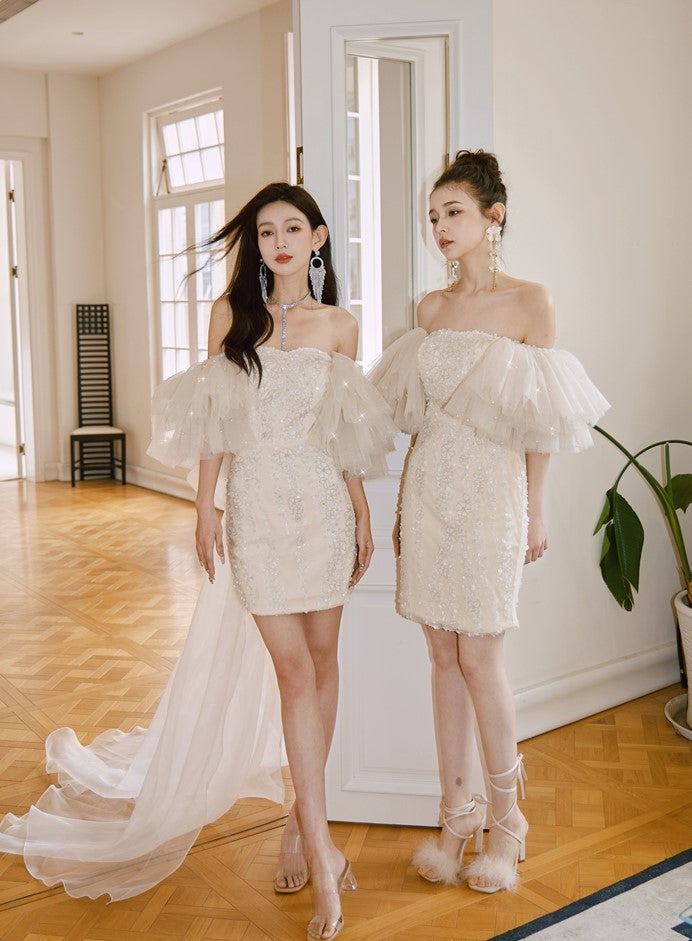 Experience elegance and glamour with our DOLLY Elegant White Flower Off Shoulder Short Puff Sleeves Short Dinner Dress. With its sophisticated design, this dress exudes class and style. Perfect for any formal event, its off shoulder and puff sleeves add a touch of femininity to your look. Elevate your style with OTHELLA.