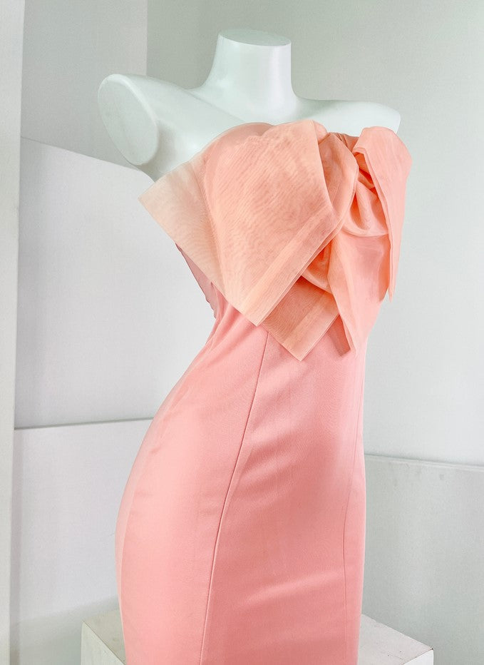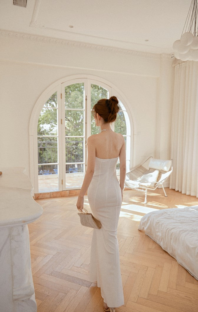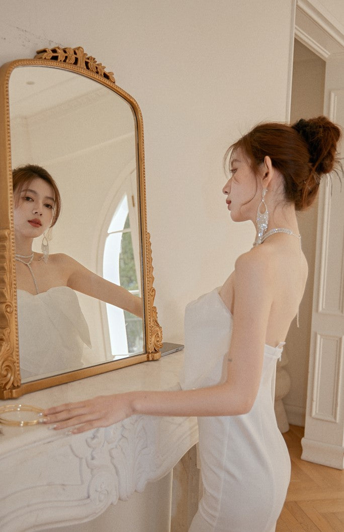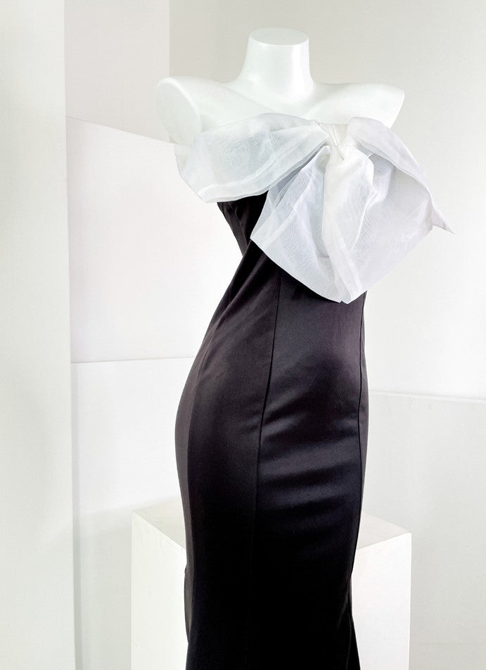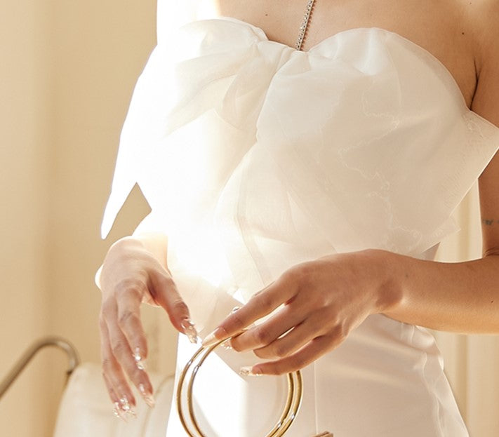 DOLLY Elegant White French Style Big Bow Long Fish Tail Cocktail Dress-FREYA