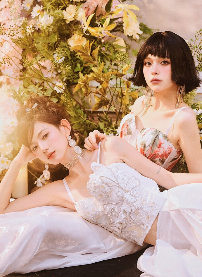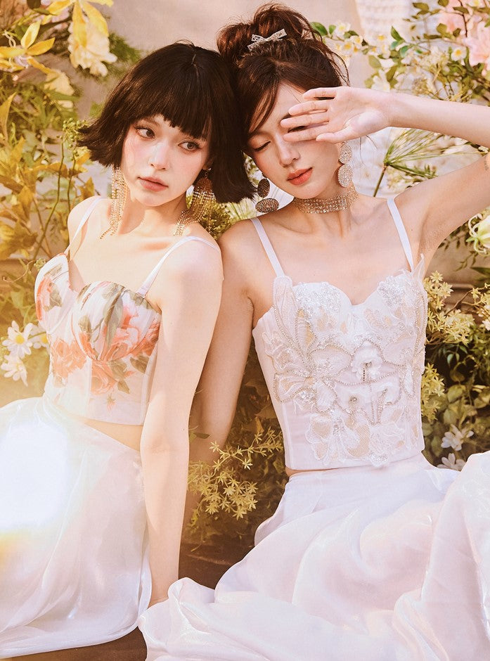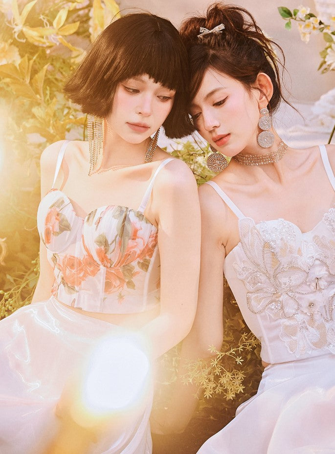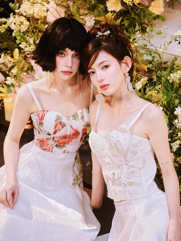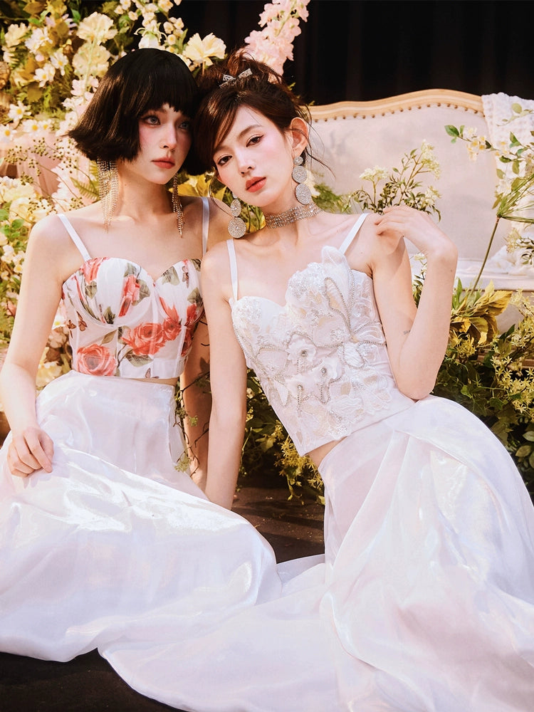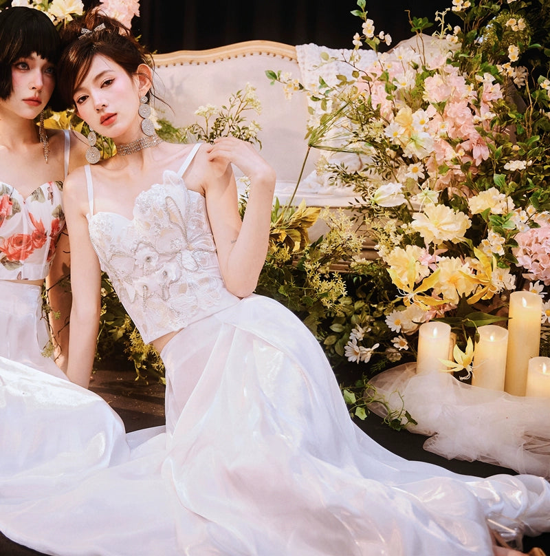 DOLLY Elegant White Natural Waist Flower Bud Long Chic Skirt-CYNTHIA (V)