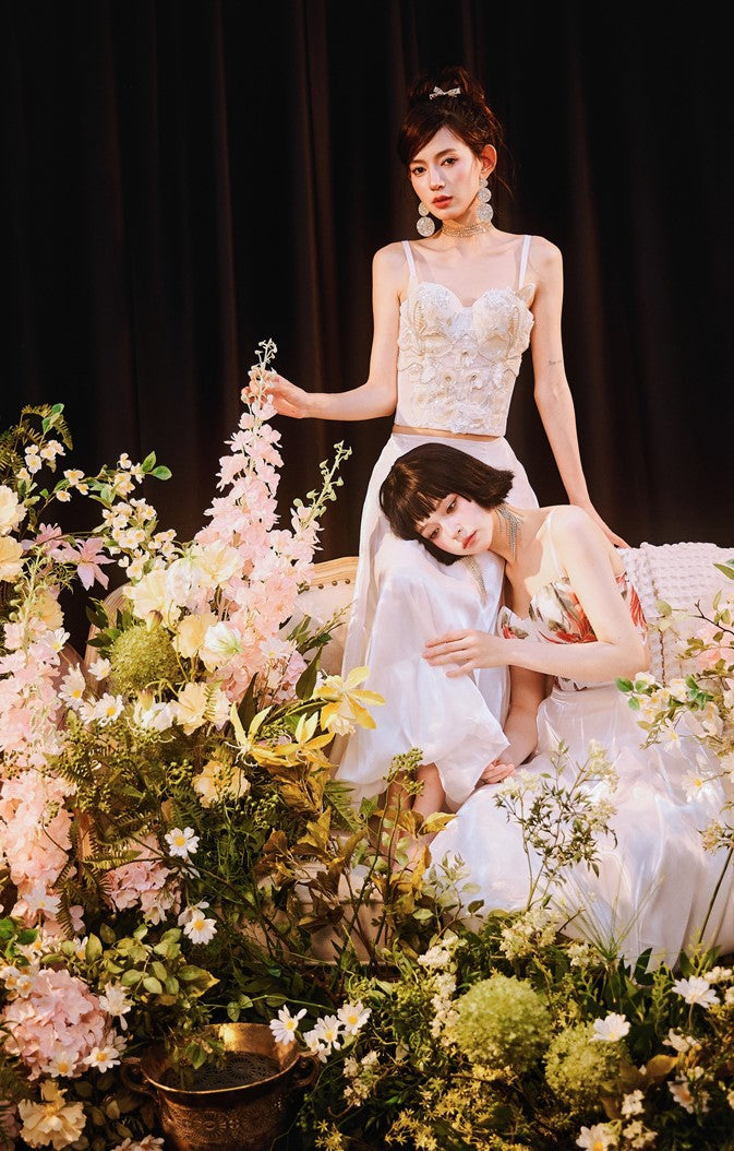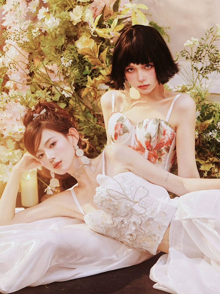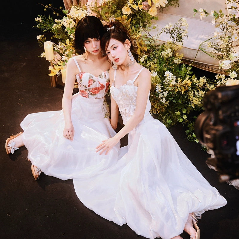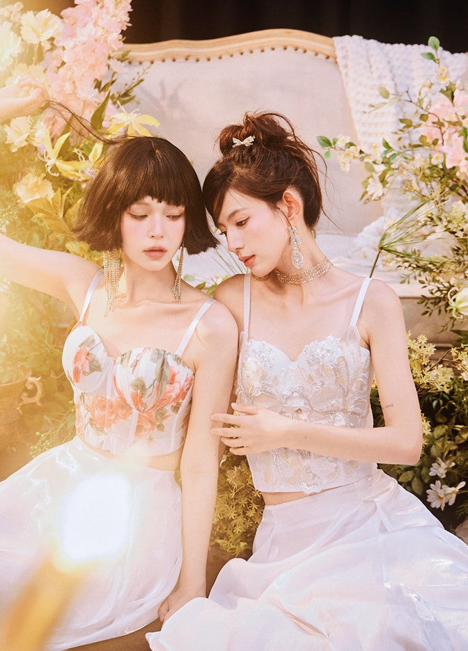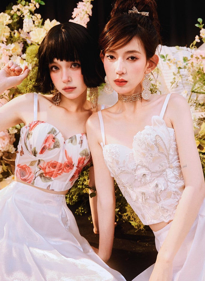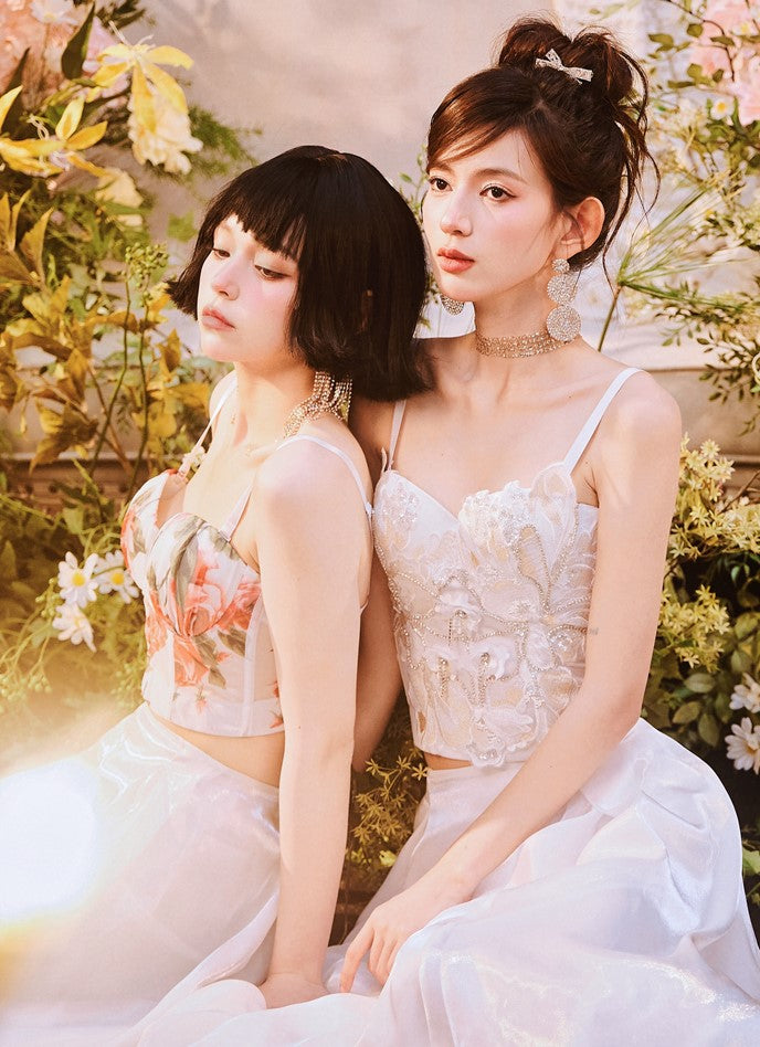 DOLLY Elegant White Natural Waist Flower Bud Long Chic Skirt-CYNTHIA (V)