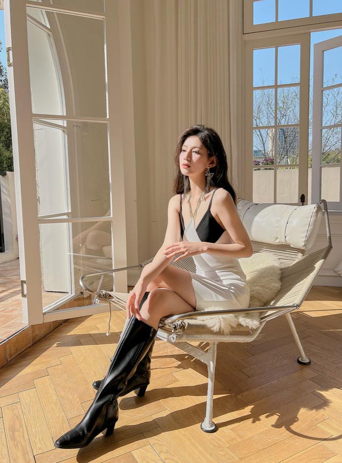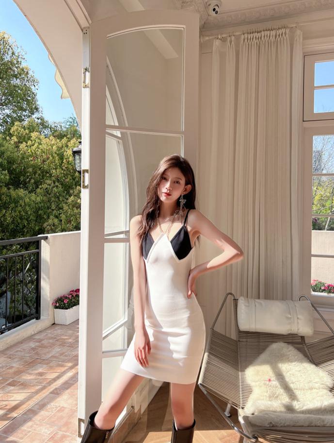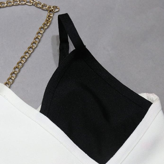 DOLLY High End Black and Brown V-Neck Sleeveless Bandage Midi Date Dress-MO