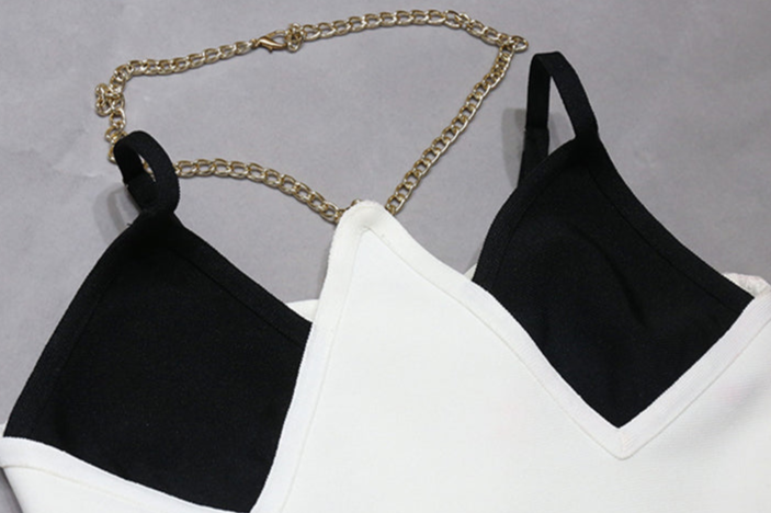Indulge in luxury with the DOLLY High End Black and Brown V-Neck Sleeveless Bandage Midi Date Dress. This dress exudes class and sophistication, making you feel elegant and tasteful. With its stylish v-neck design and sleek sleeveless cut, it is the perfect choice for any special occasion. Embrace your inner fashionista and make a statement in this exclusive dress.