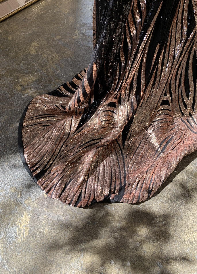 Indulge in the epitome of luxury with our DOLLY High End Black Gold Chest Wrap Dress. The off-shoulder, long sleeve design exudes elegance, while the stunning black and gold color scheme exudes sophistication. Perfect for your next high-end event, this dress is absolutely gorgeous.