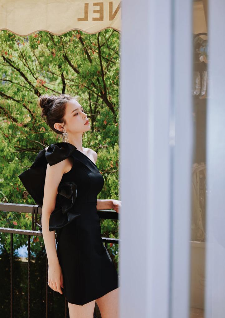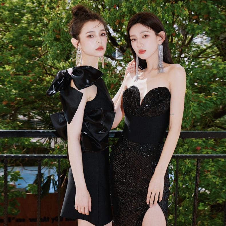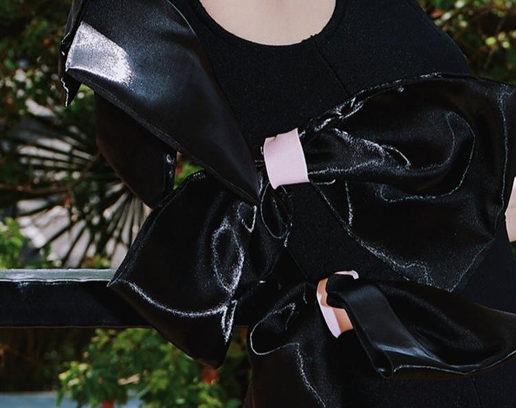 DOLLY High End Black Sleeveless Bow Off Shoulder Slim Fit Short Chic Date Dress-JUNEY