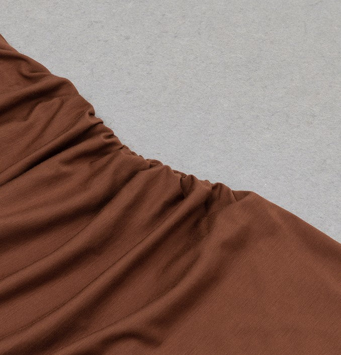 DOLLY High End Caramel Coffee Slant Collar Sleeveless High Waist Long Dinner Dress-CALYPSO (V)