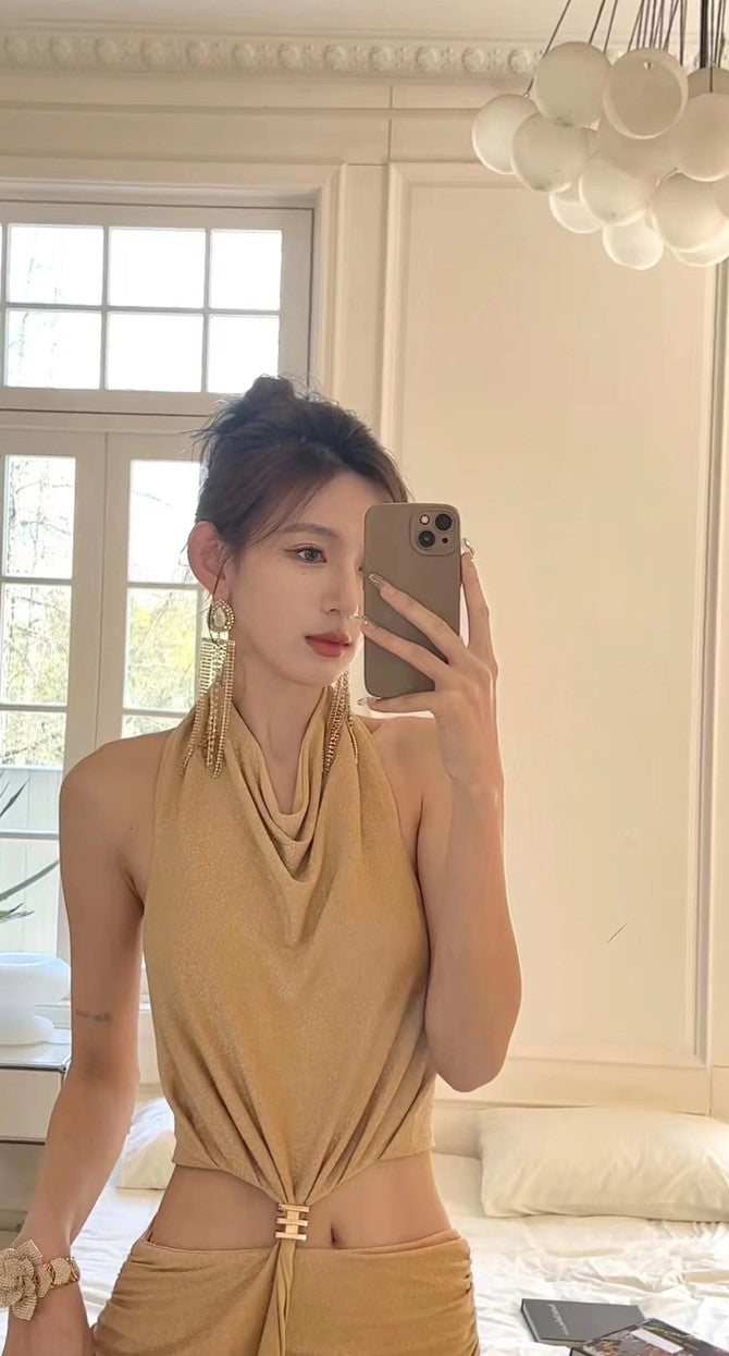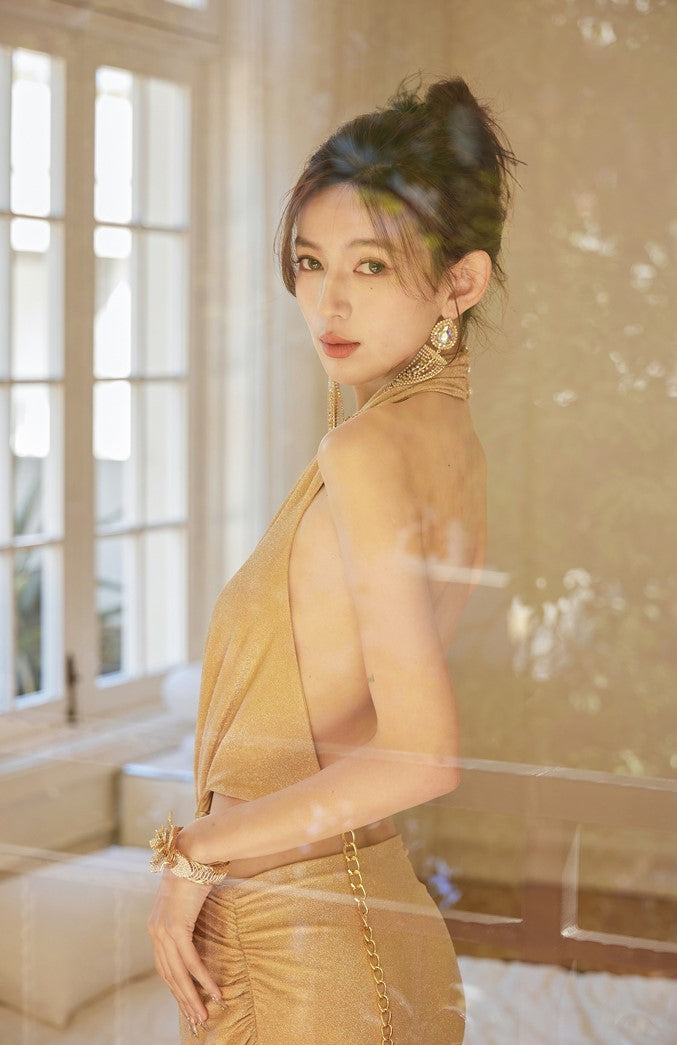 This DOLLY dress is a perfect combination of sexy and elegant. The swing neck and sleeveless design give a luxurious feel, while the waist-baring and irregular hem add a touch of seduction. Perfect for cocktail parties, this dress is sure to make you stand out in style. (v)