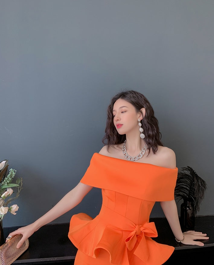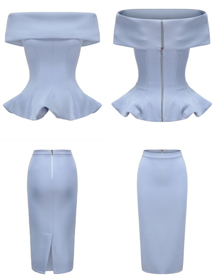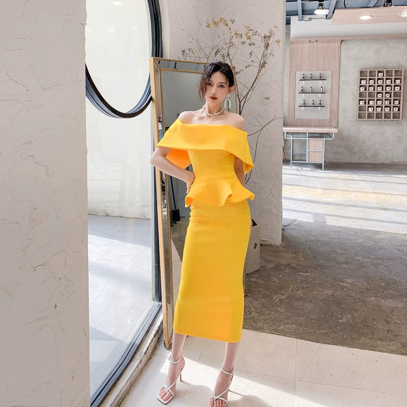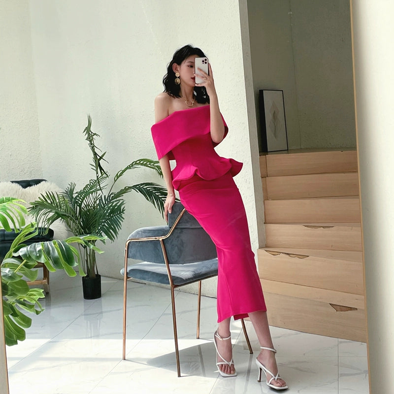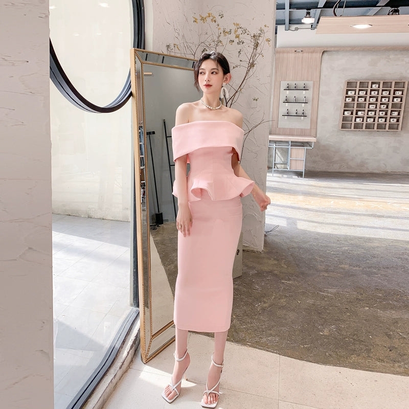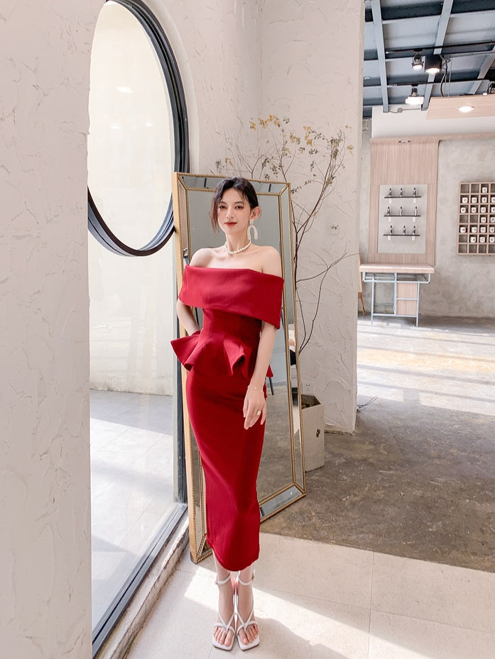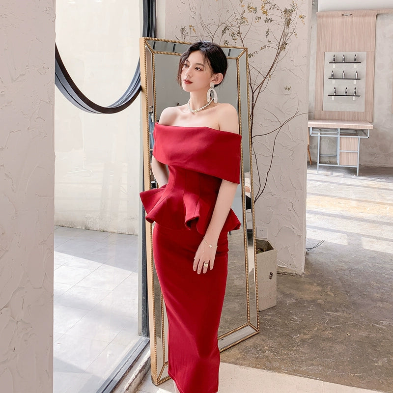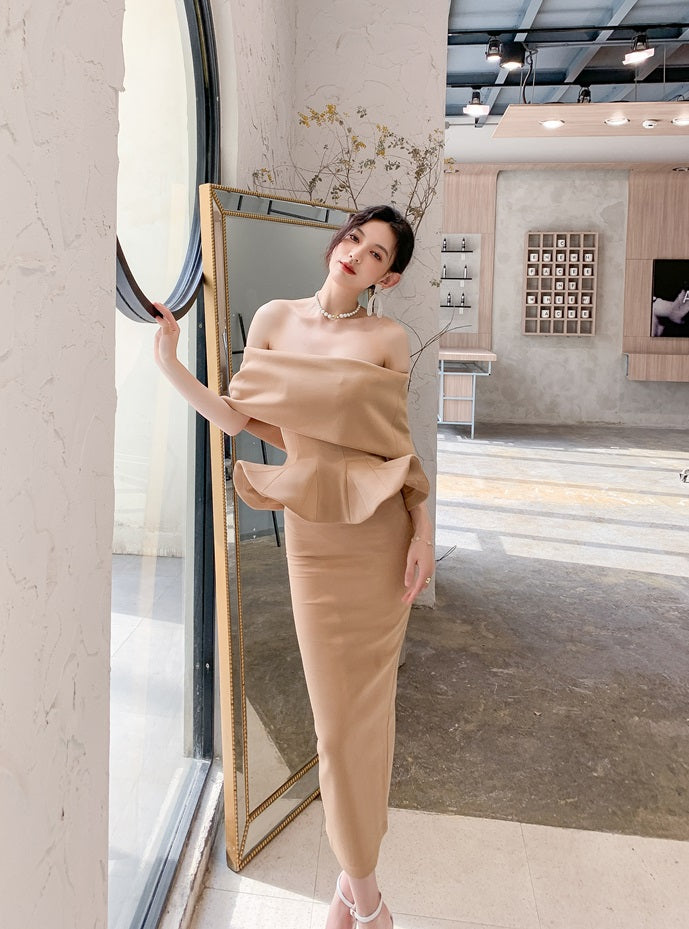 DOLLY High End Off Shoulder Peplum Tube Top Slim Fit Wedding Guest Dress-HANS