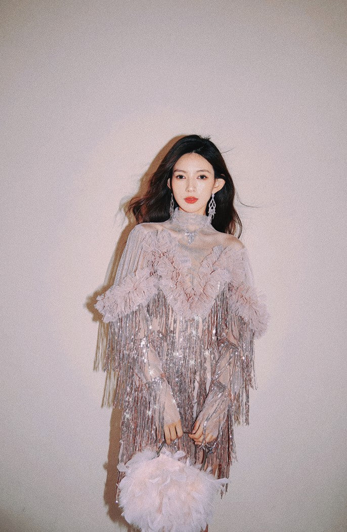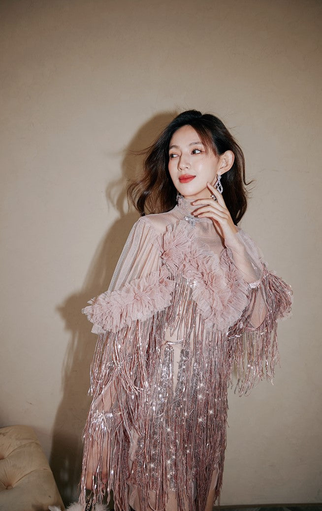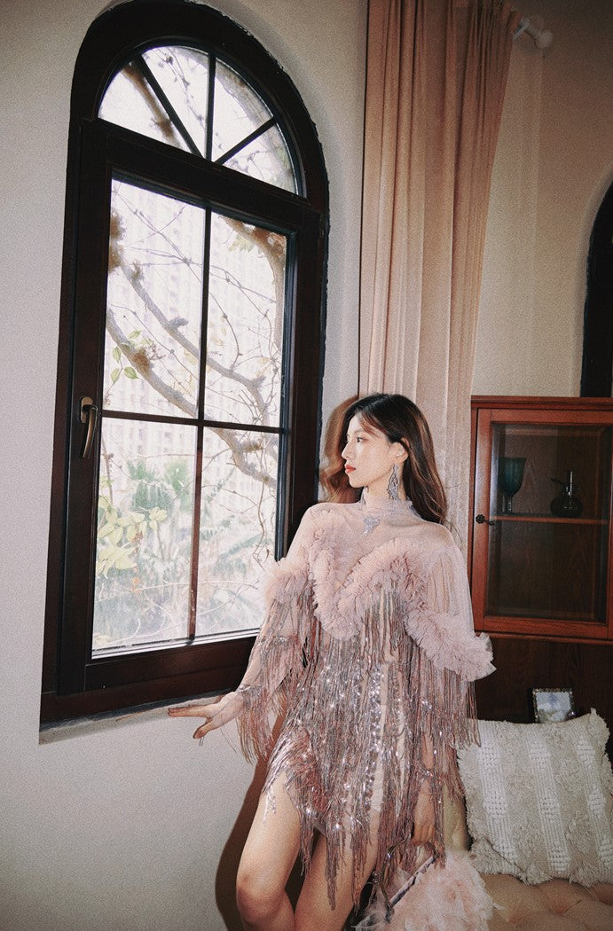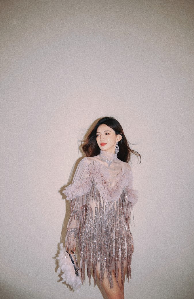 DOLLY High End Retro Style Glitter Tassel Sequin Midi Birthday Dress-KHLOE