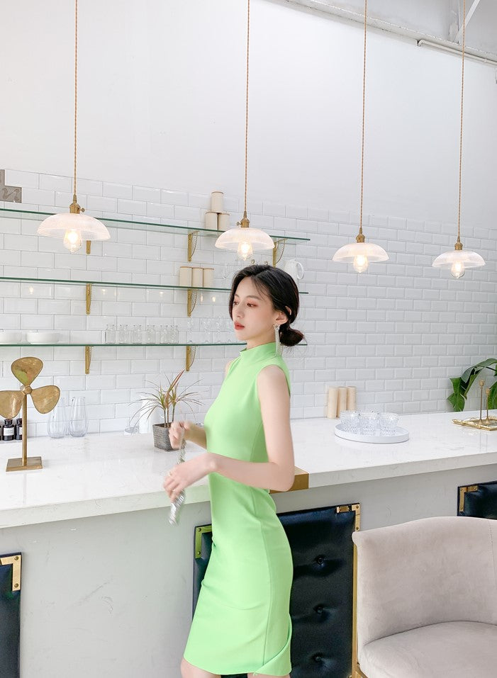 DOLLY High End Stand Collar Sleeveless Slim Fit Bandage Midi Dress-KYA