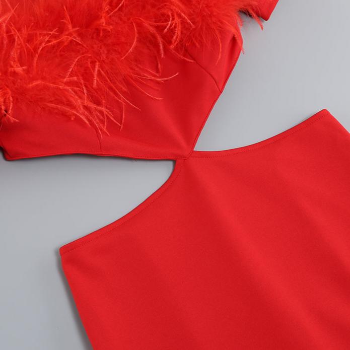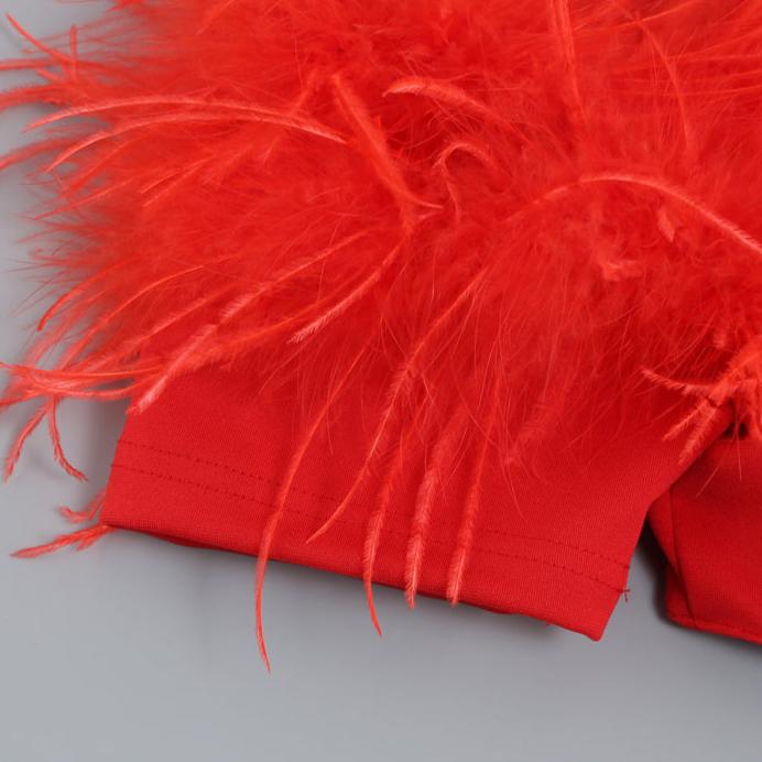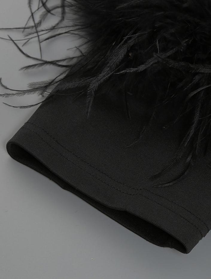 DOLLY Luxury Black Feather Tube Top Waist Baring Slim Fit Long Cocktail Dress-JAJA