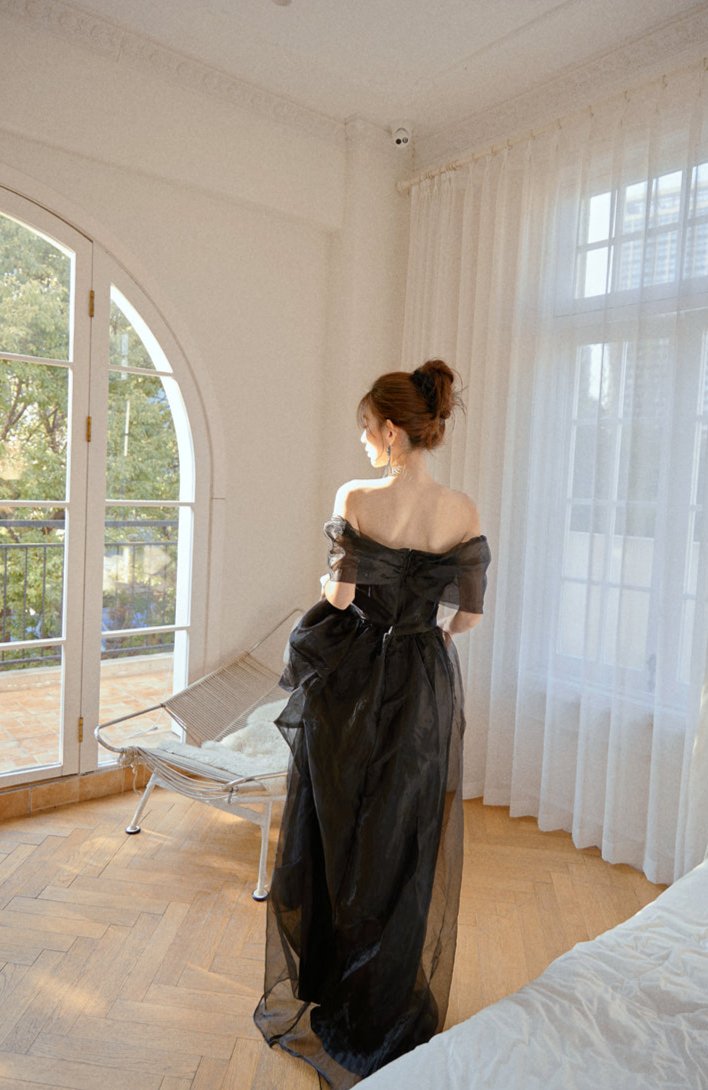 DOLLY Luxury Black Retro Style Off Shoulder Short Sleeve Long Banquet Dress-QUINNY