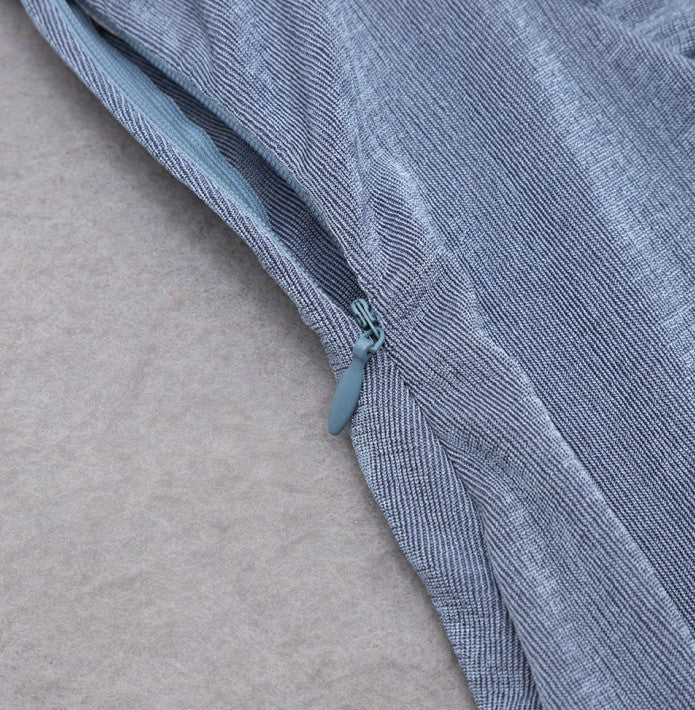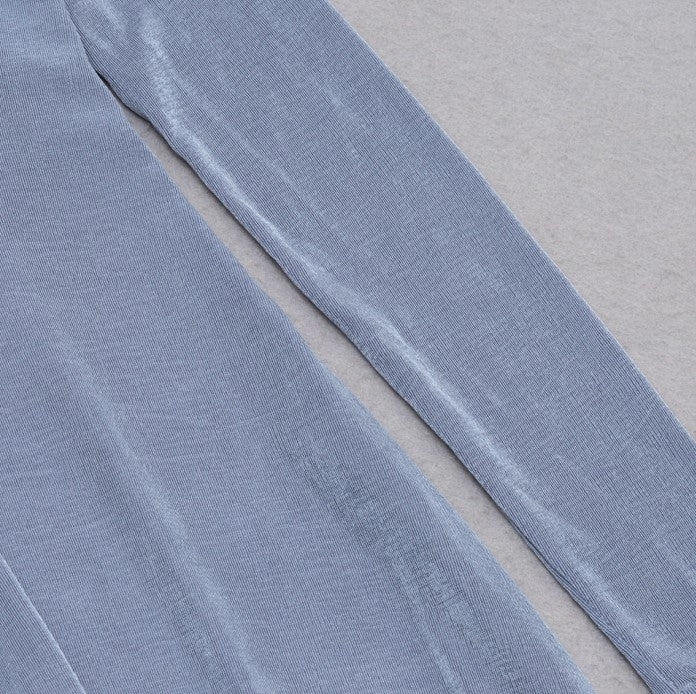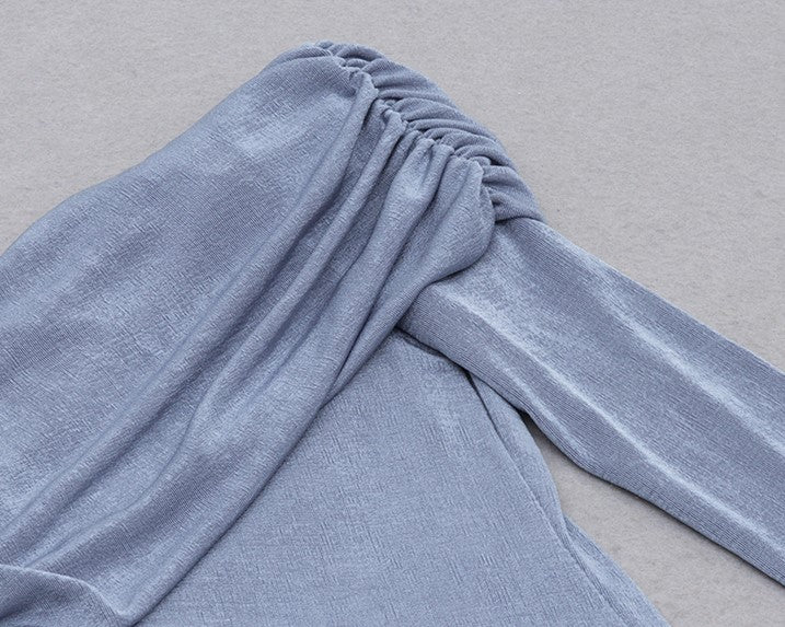 DOLLY Luxury Fog Blue Pleated Off Shoulder Slant Collar Long Sleeve Banquet Dress-MAYA