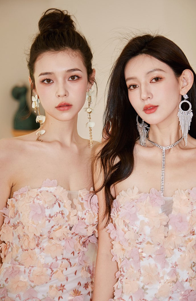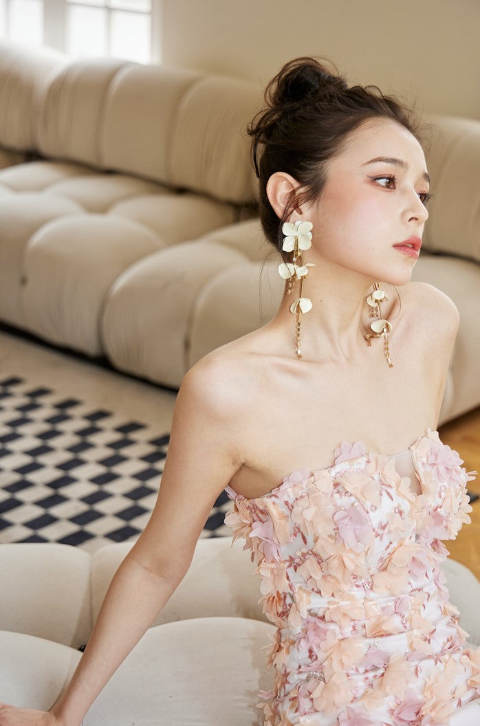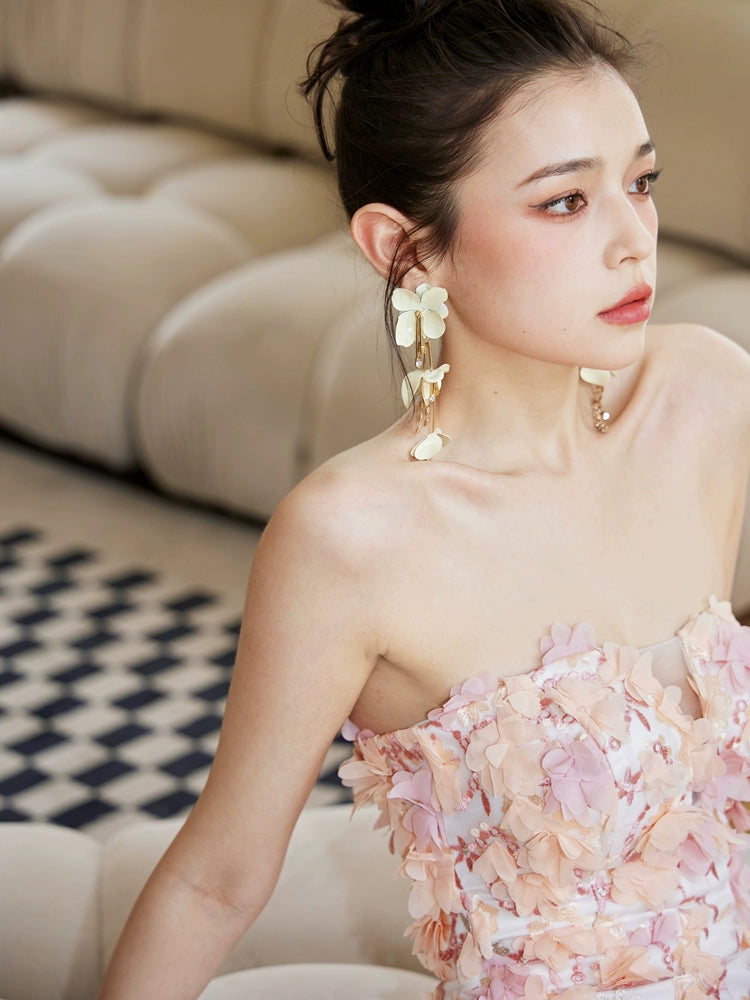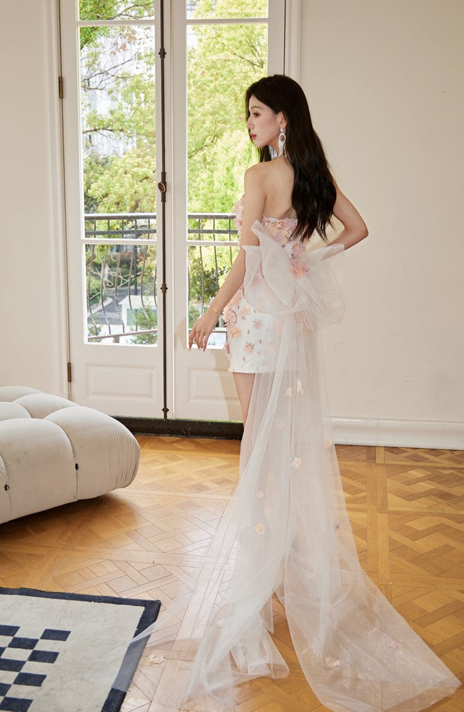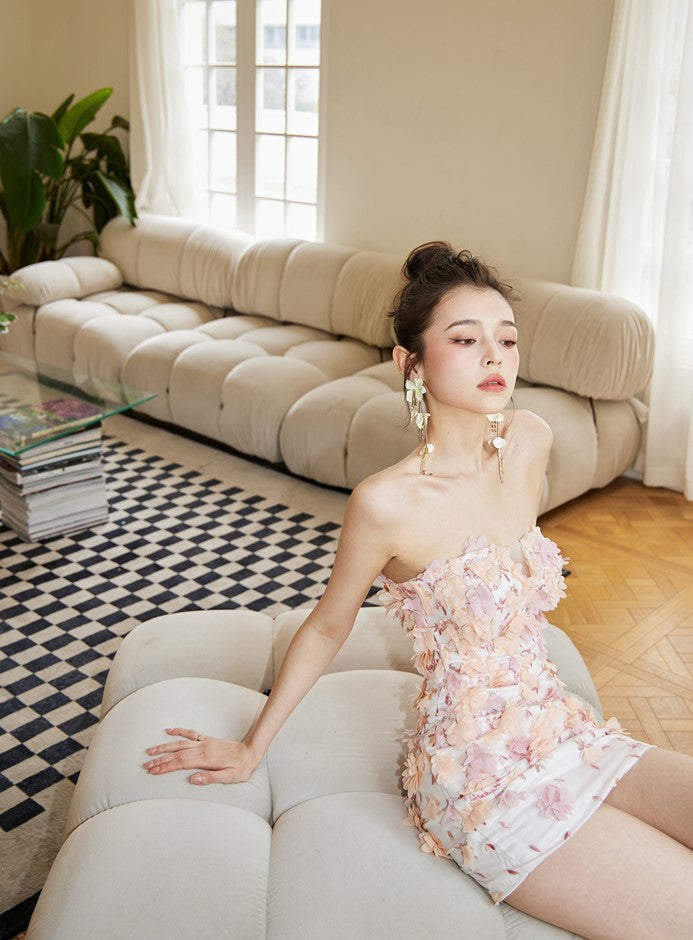 DOLLY Luxury French Style Chest Wrap Flower Sleeveless Backless Short Dress-PALMA