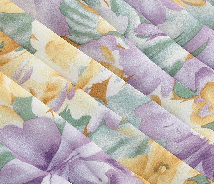 DOLLY Luxury French Style Floral One Sleeve Off Shoulder Waist Baring Slit Resort Dress-LYRA