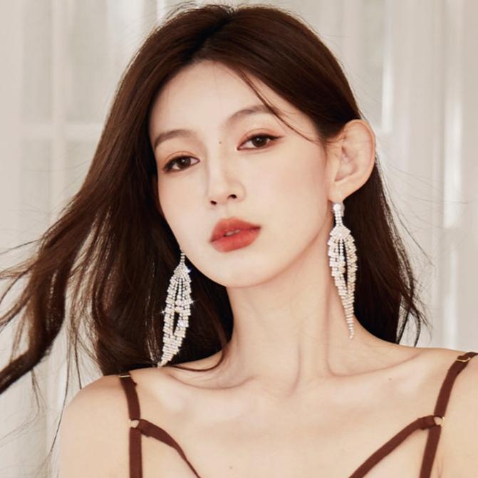 DOLLY Luxury Sparkling Full Diamond Chic Tassel Earring-CAROL
