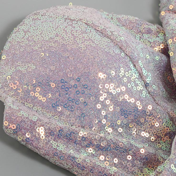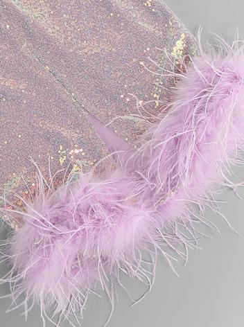 Indulge in luxury with our DOLLY dress. Adorned with a stunning violet glitter, this sleeveless chest wrap midi dress is perfect for any party. The feather details add a touch of elegance and make you stand out in the crowd. Embrace the nice feeling of being the center of attention in our exclusive dress.
