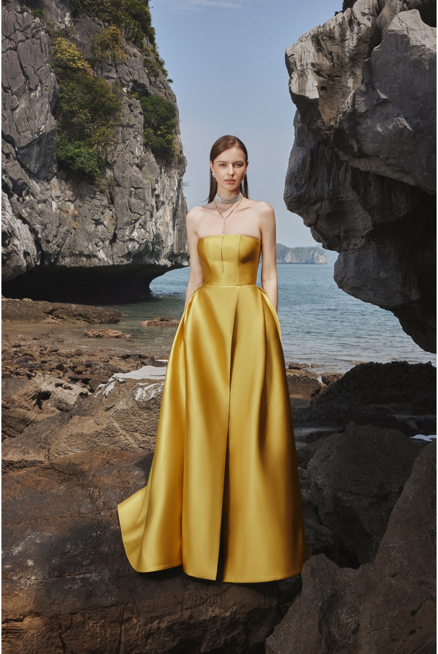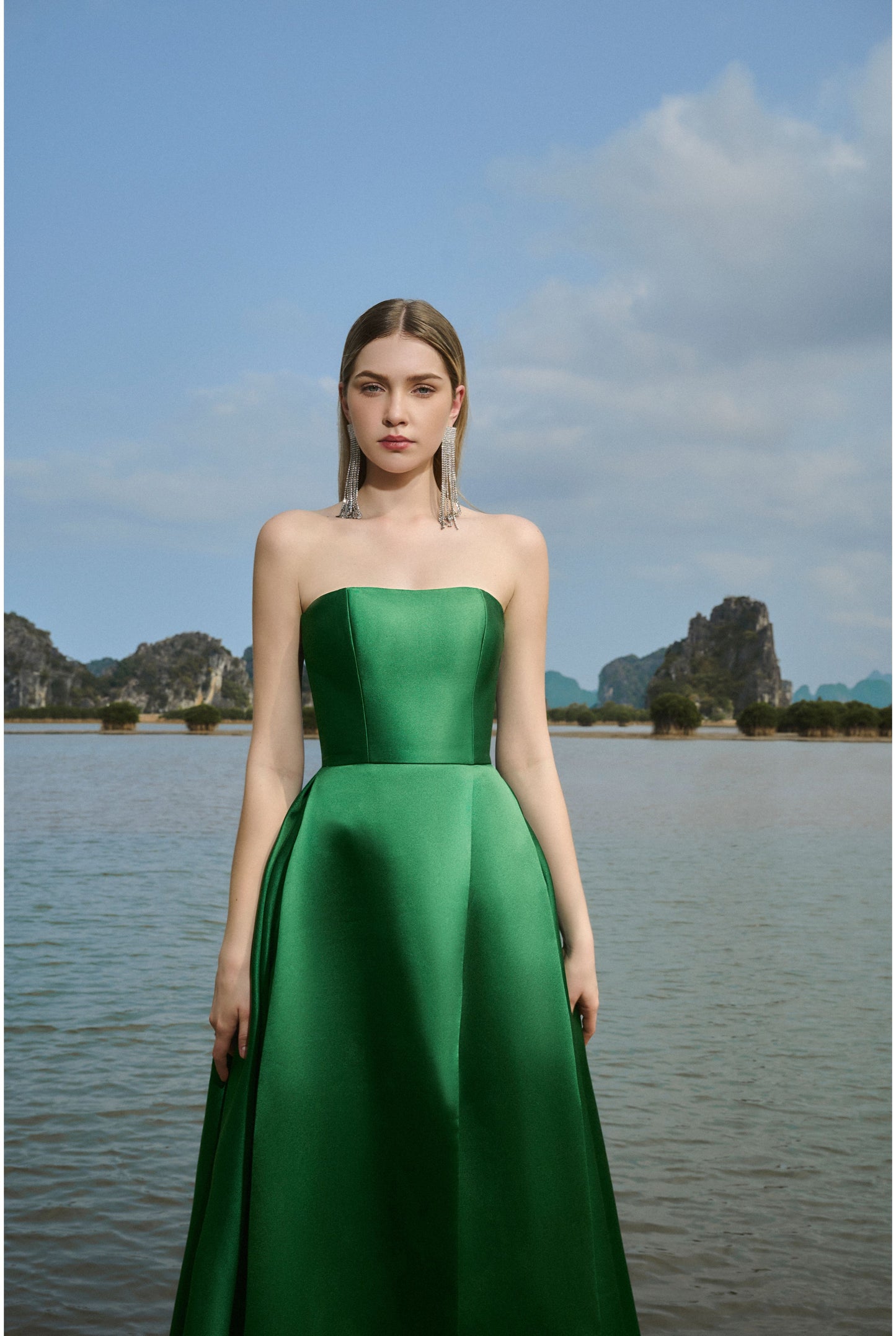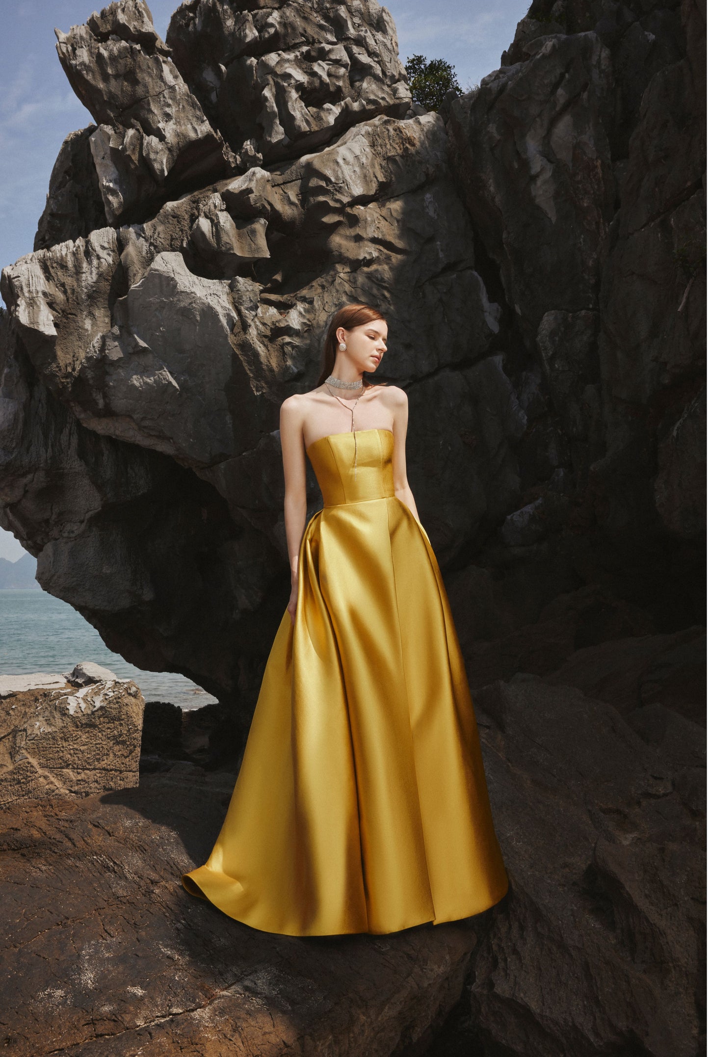 The Full Dress by Tracy Studio embodies luxury, femininity, and elegance. With its strapless design thanks to high-quality tailoring and hand-cutting techniques, this dress is a statement piece for formal events. The skirt adds a touch of glamour, ensuring that the wearer will turn heads at any dinner party or red carpet event.