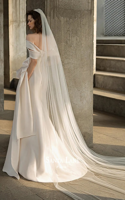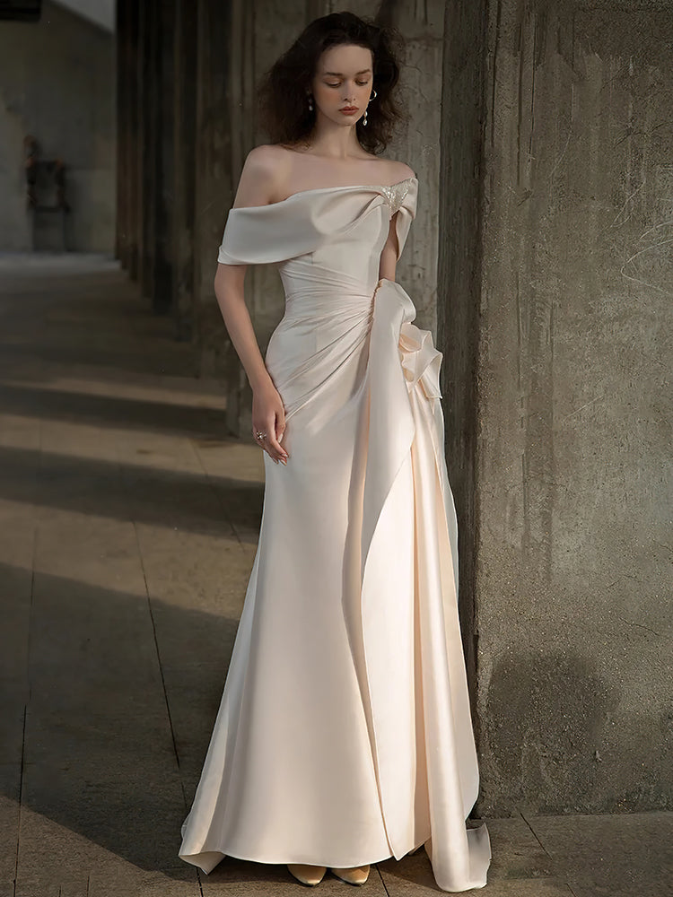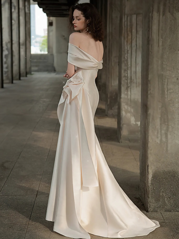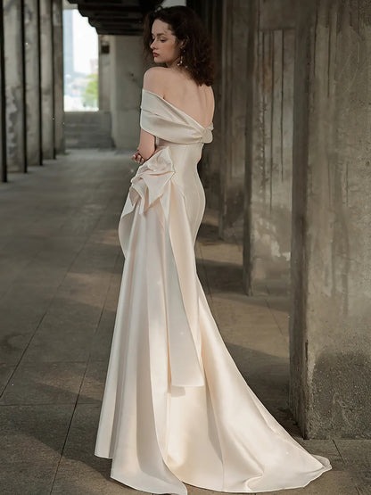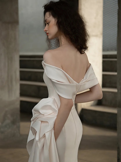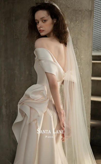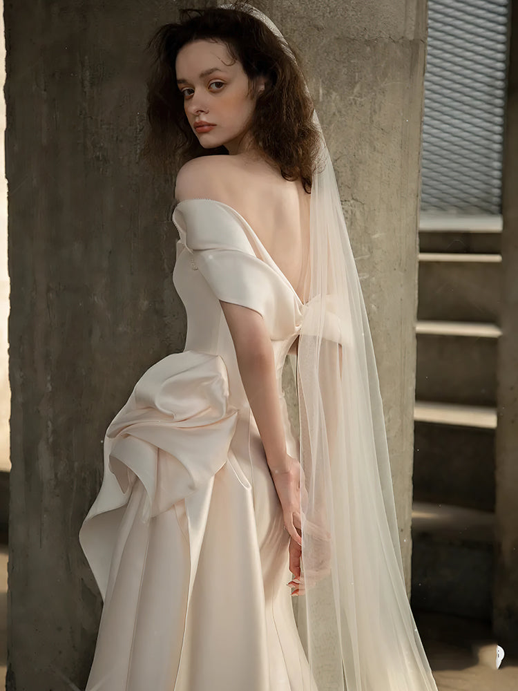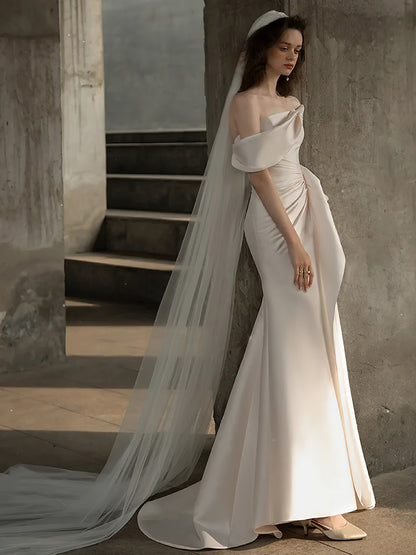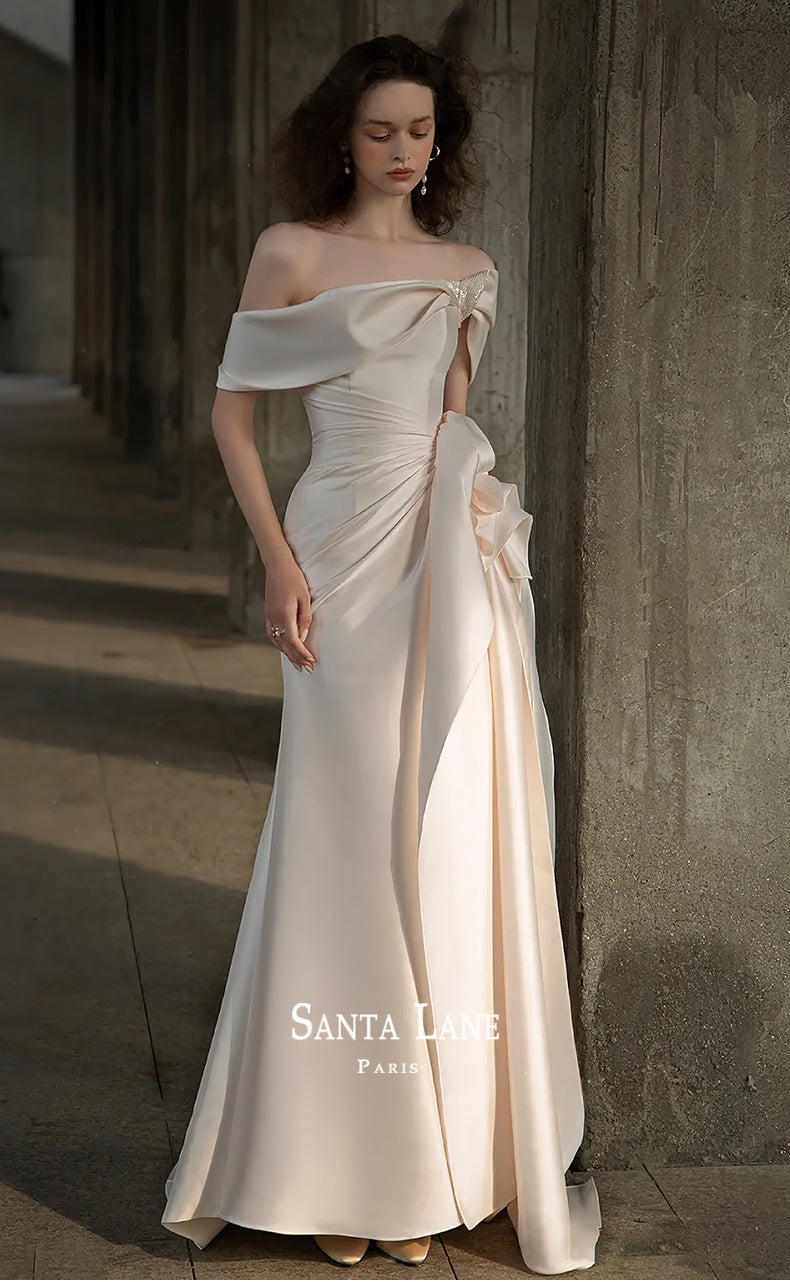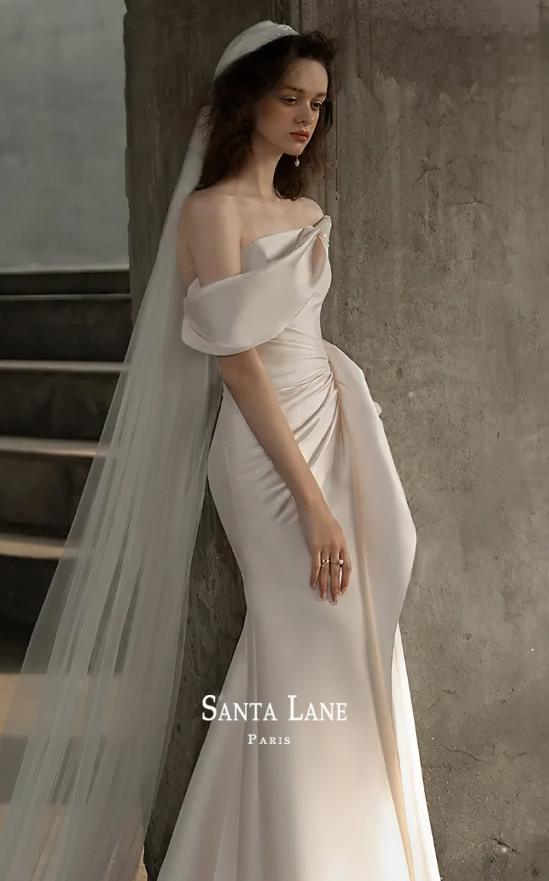 Early Spring 2023 Satin one-shoulder slim-fit high-end mini-tail wedding dress- Satina