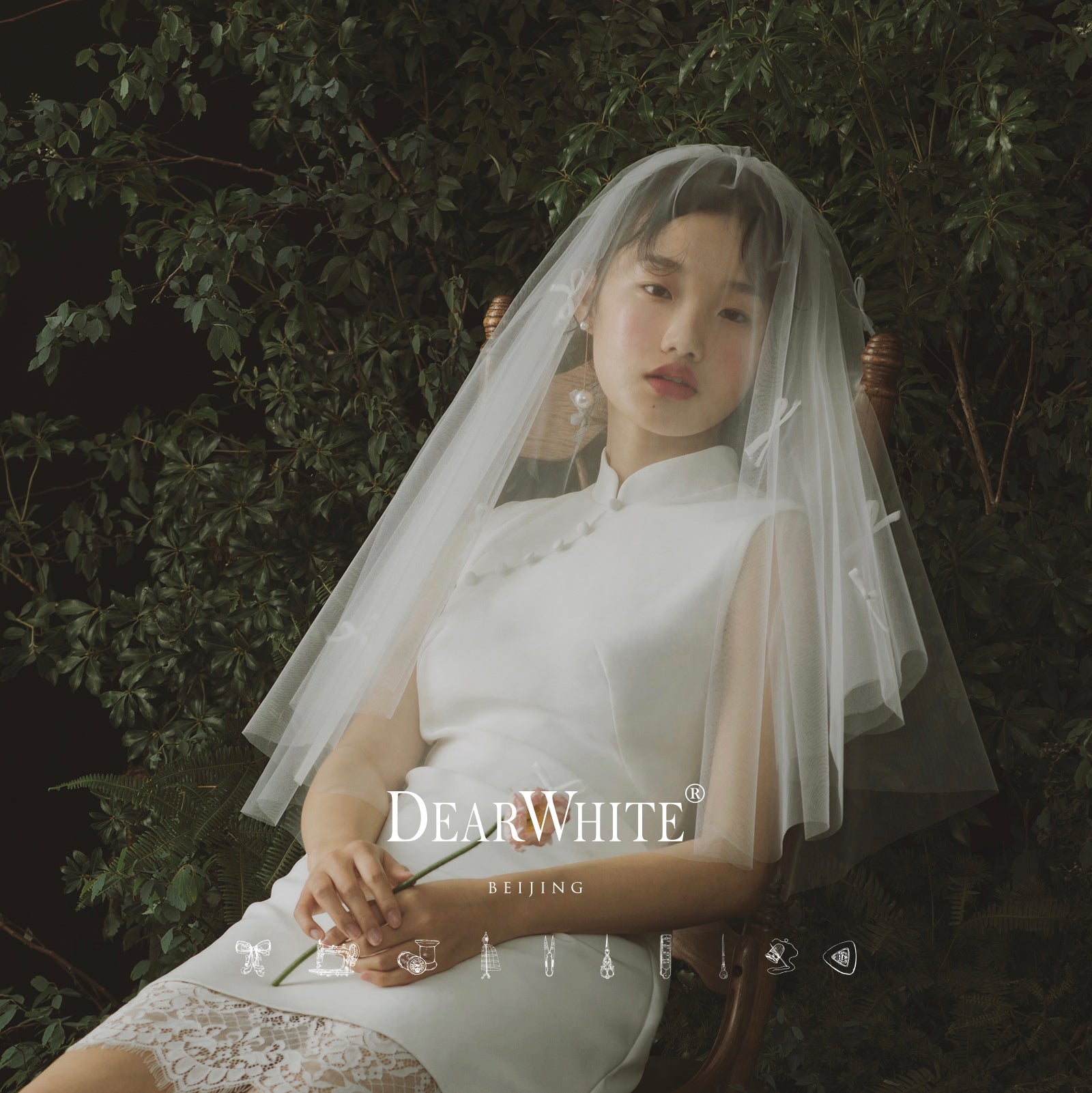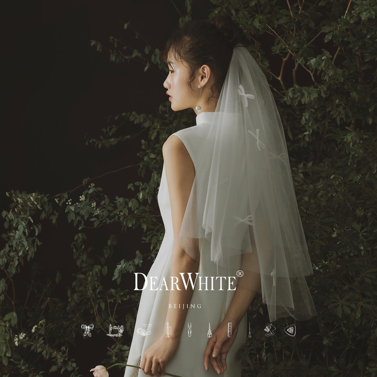 Early Spring 2023 new veil bride female short wedding bow simple wedding headdress- Saud