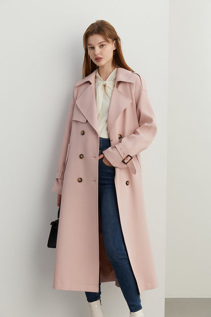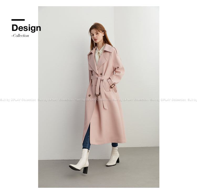 fall Autumn pink old money style double-breasted trench coat - Mala