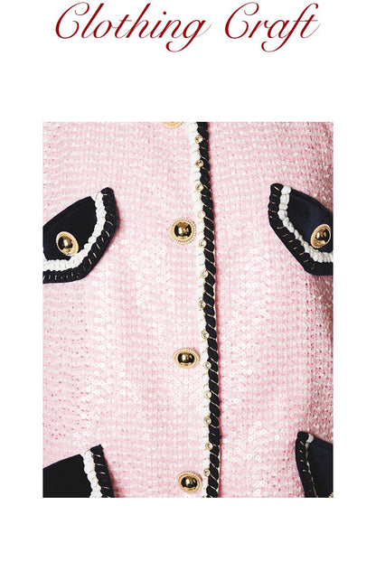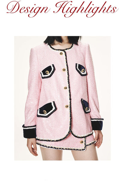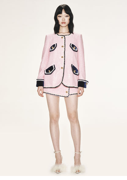 FAME Autumn shimmering sequin beads pink classic coat blazer - Adil