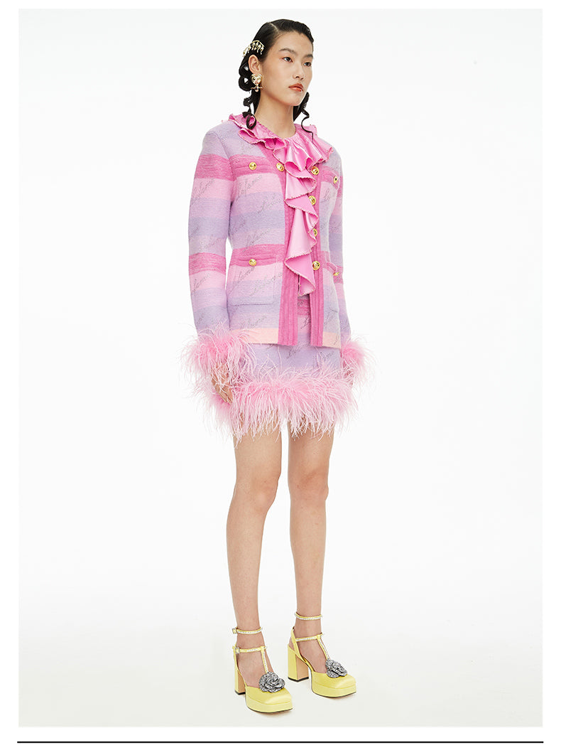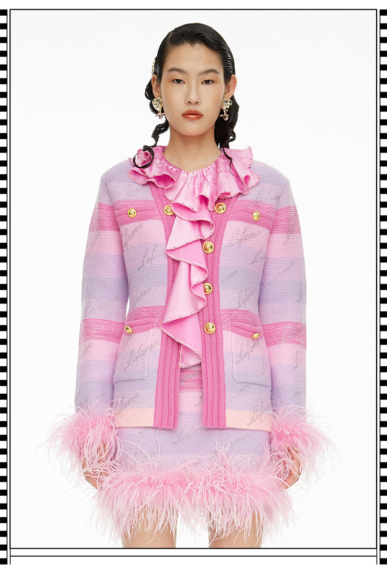 Fimmia's FAME cardigan adds a chic and fashionable look to any autumn wardrobe. Its luxurious winter pastel gradient offers a subtle sophistication, while the striped diamond embellishments exude class and style. Perfect for creating a timeless and elegant appearance.