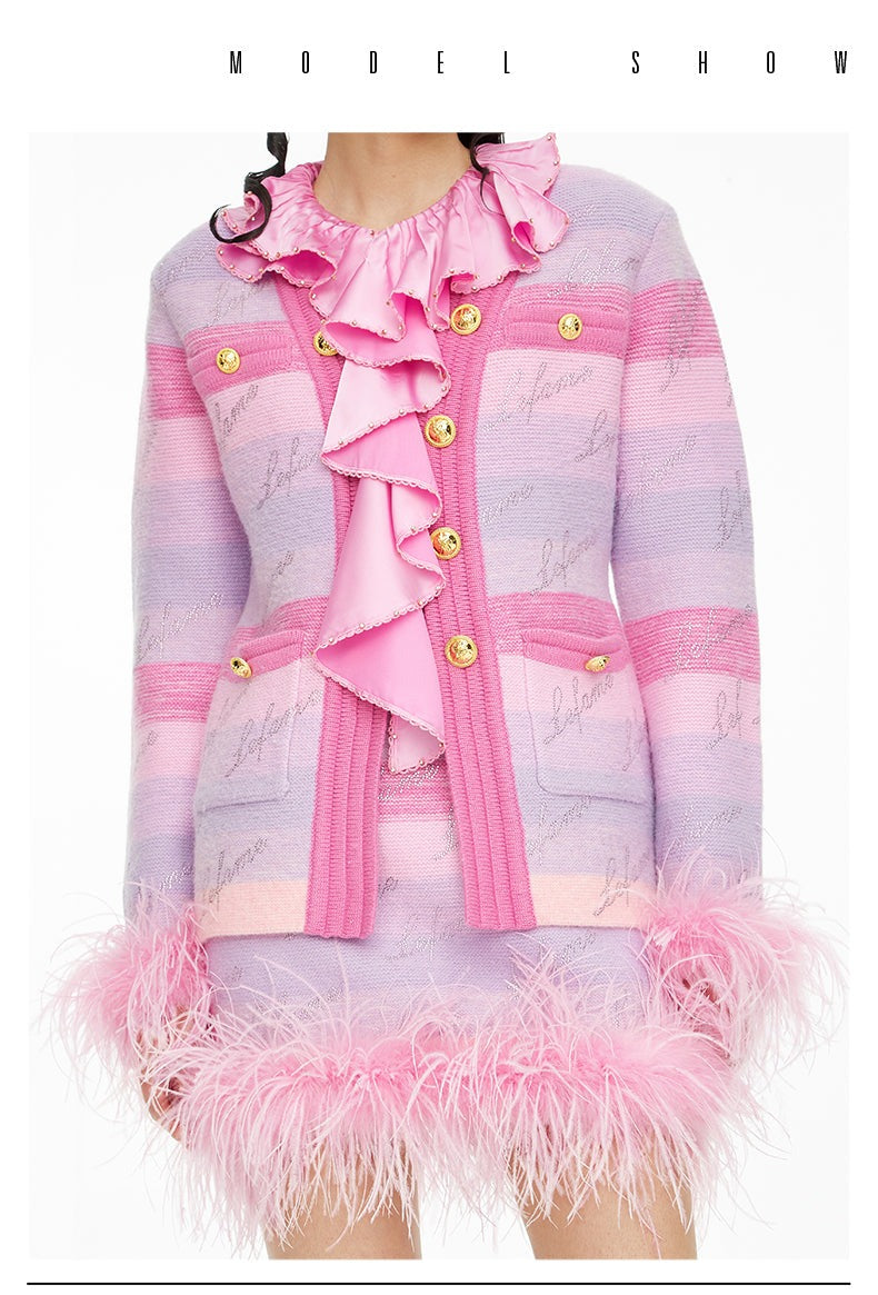 FAME luxury Winter pastel gradient striped diamond embellished-knit cardigan - Fimmia