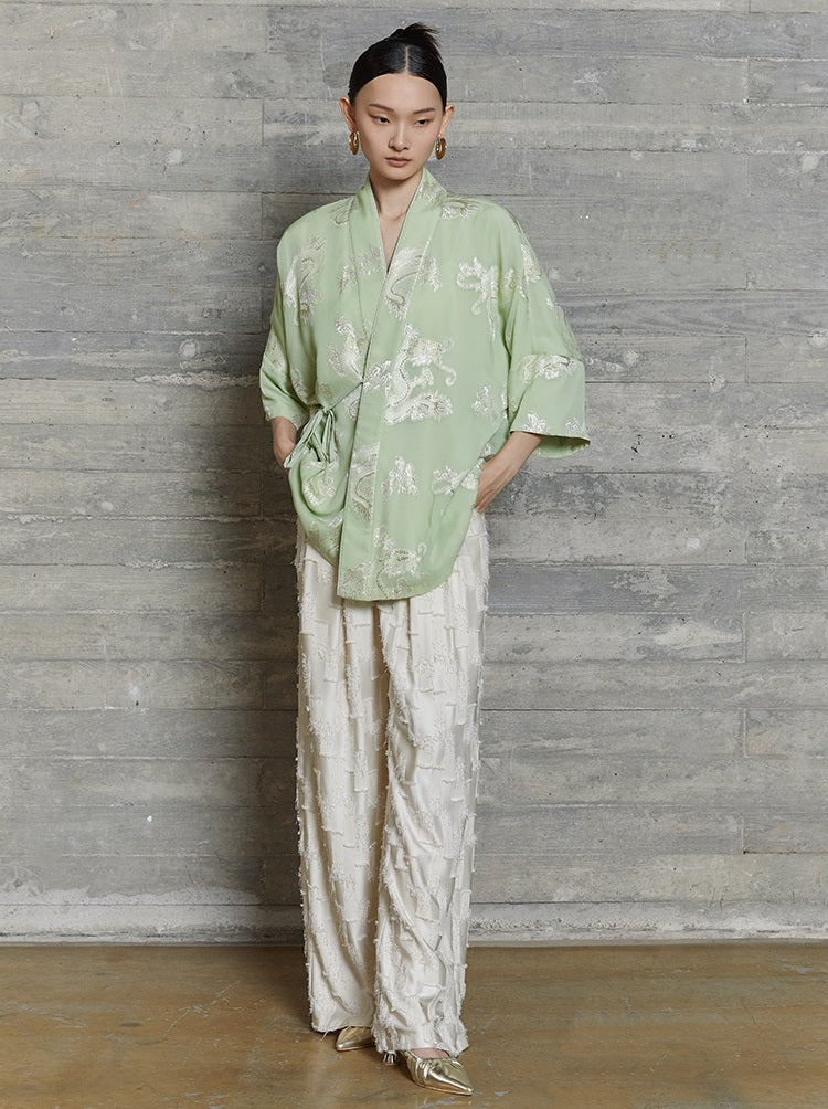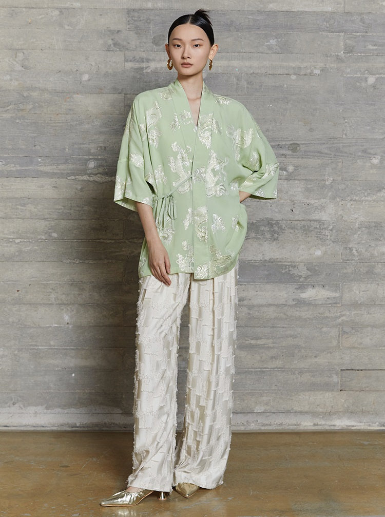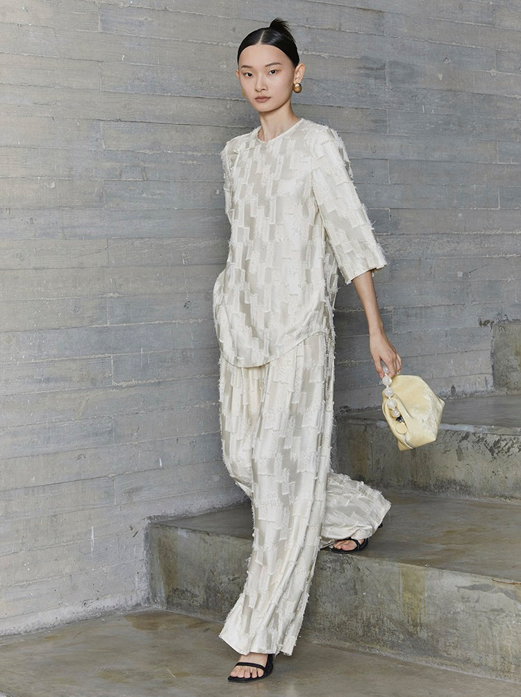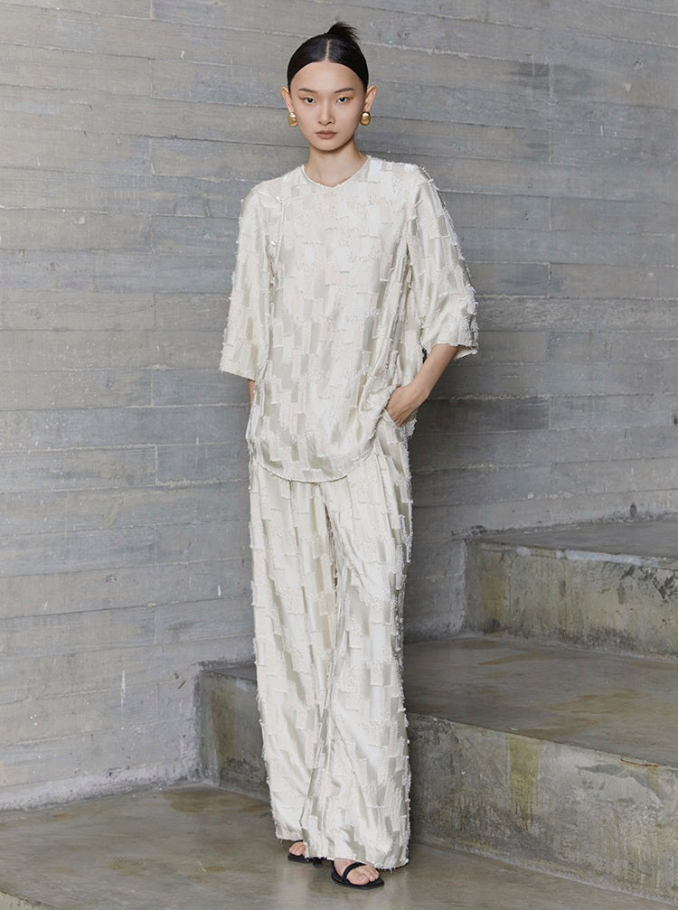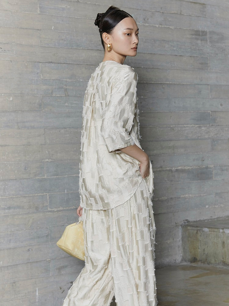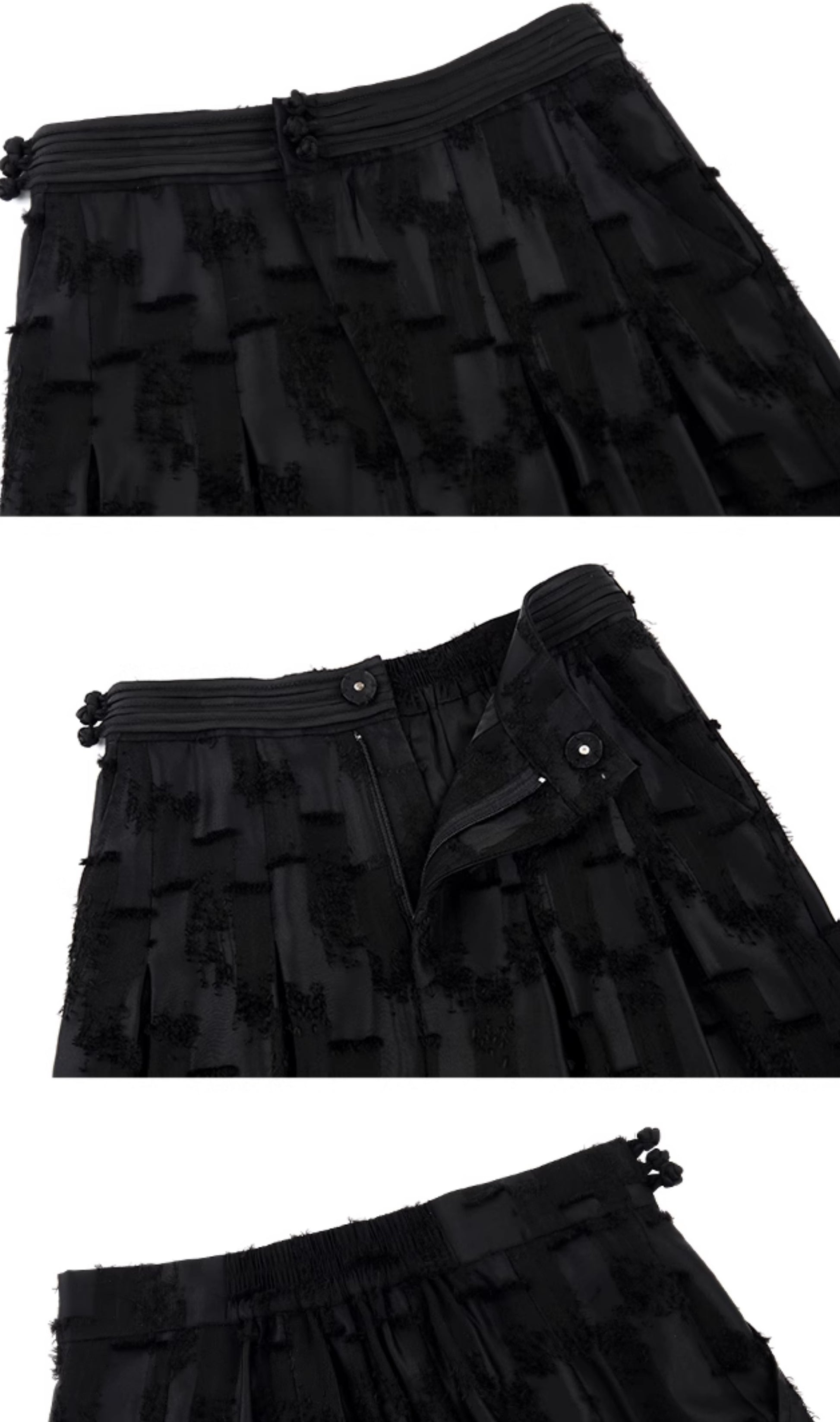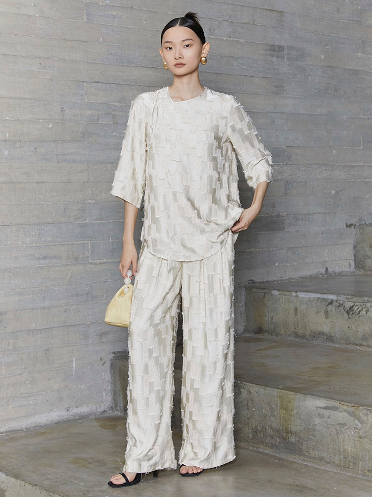 HECO jacquard loose thin wide-leg high waisted black pink apricot PANTS women - PURPOSE.