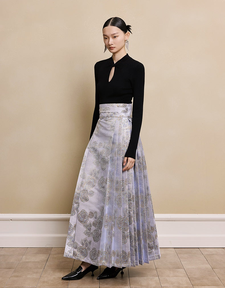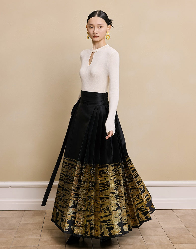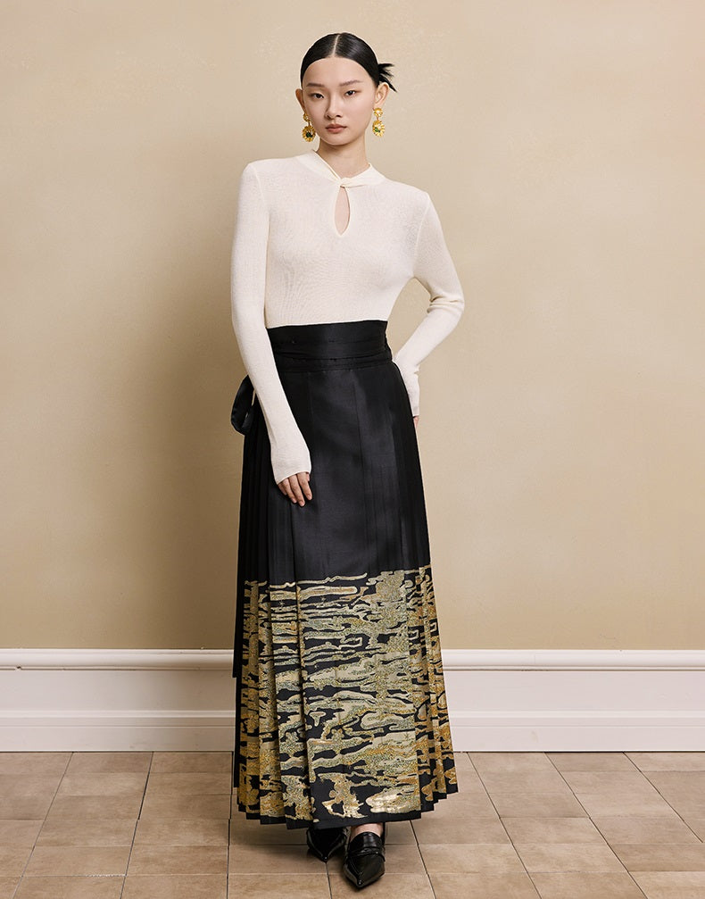 HECO red black white wool Blend twisted cut-out stand collar long-sleeved Knit- secret.
