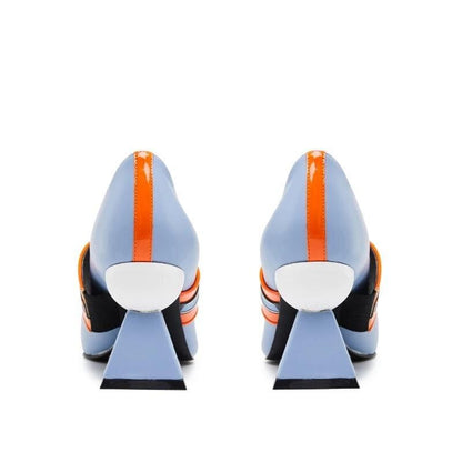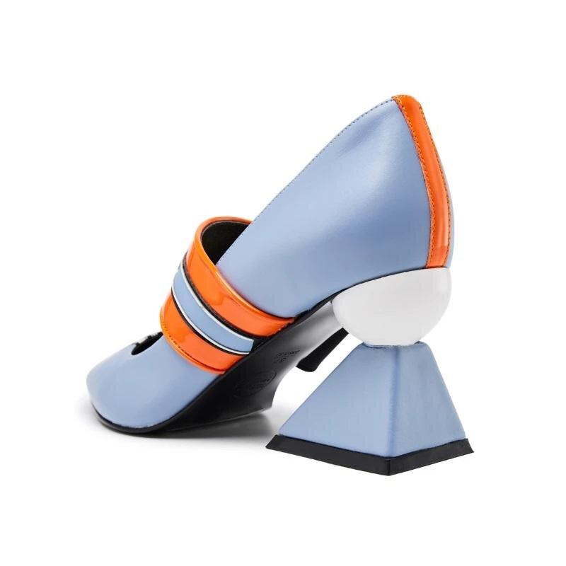HOA spring high end pastel blue low shiny trapezoidal nascar mary jane pumps - Dolia