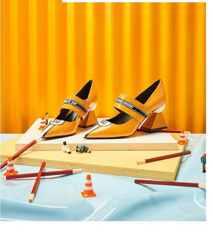Popular elements: Shallow mouth, belt decoration, thick heel