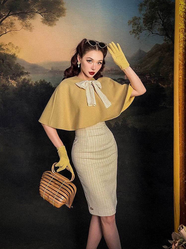 Le Palais multi-wear Fahburn style cape coat + slim skirt set- DANG