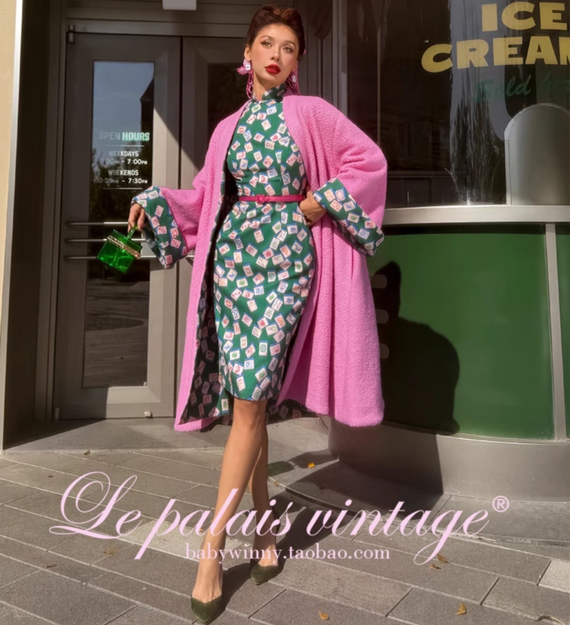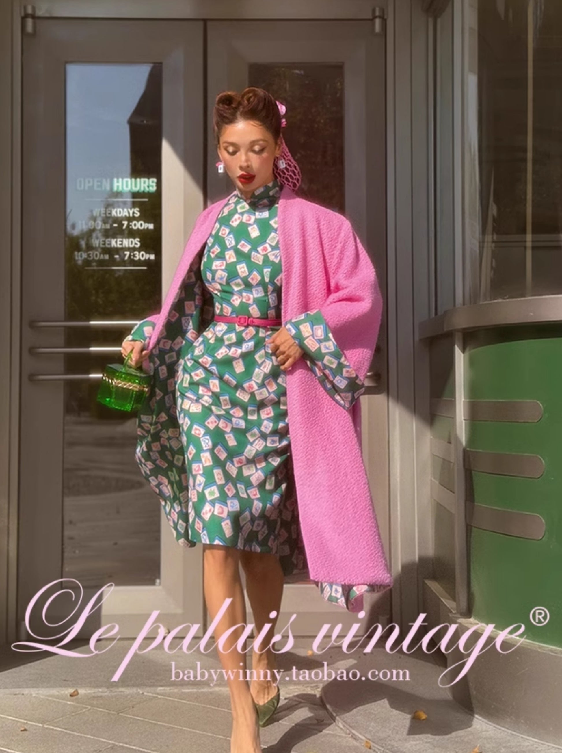 le palais vintage Hong Kong pink , green silhouette A-line jacket-SHEA.