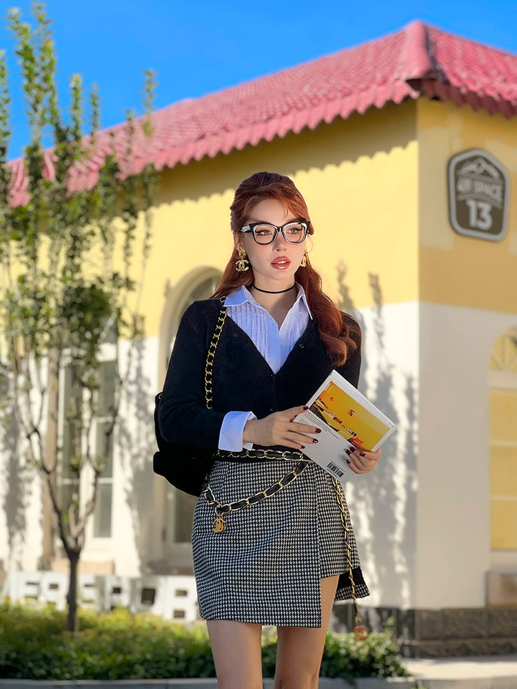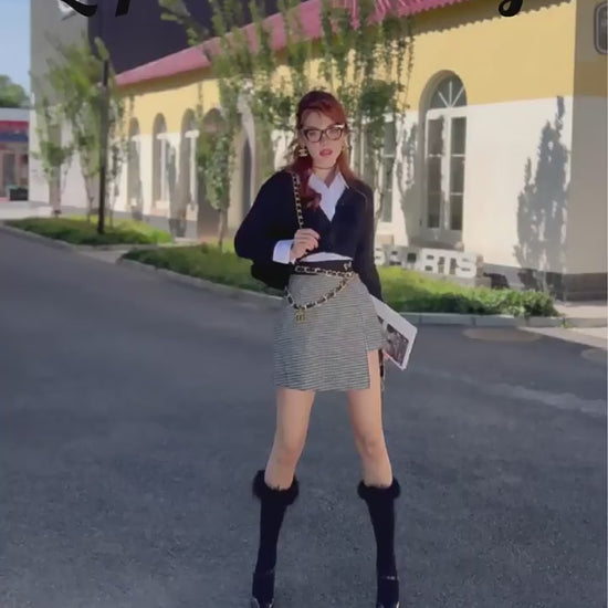 Le Palais Vintage Original Retro Irregular Long Woolen Houndstooth Skirt- VERA.