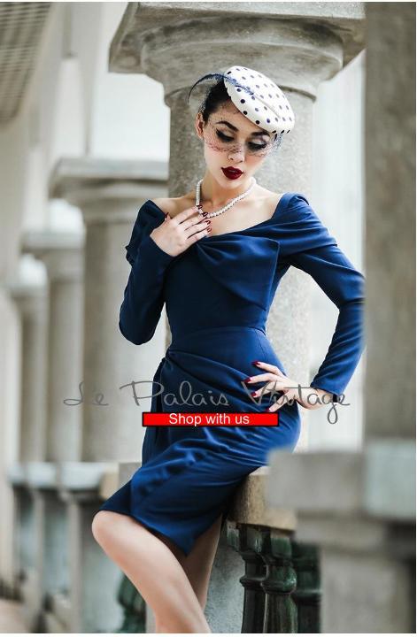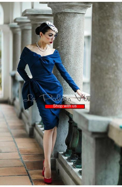 Embrace timeless allure with the Le Palais vintage retro 1950s pin-up pencil dress. Featuring a flattering slim silhouette, a charming blue collar bow, and classic design details, this dress effortlessly enhances your curves while evoking iconic mid-century glamour. Perfect for making a confident, sexy statement at any event.