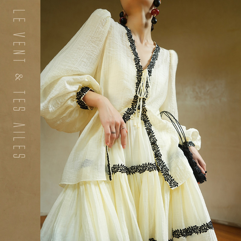 LE VENT&TES AILES ・ Mexican French luxury temperament lace high-end shirt skirt set - ODUD