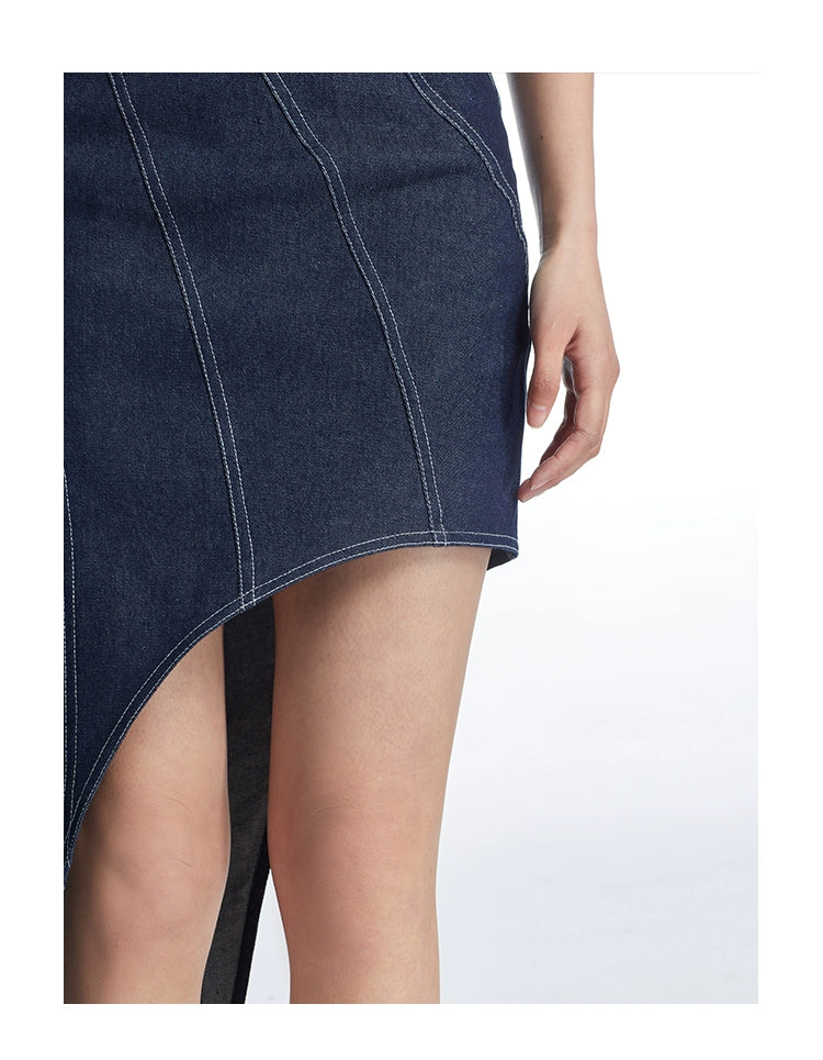 LEDI W bandeau irregular halterneck denim dress - Ikeni