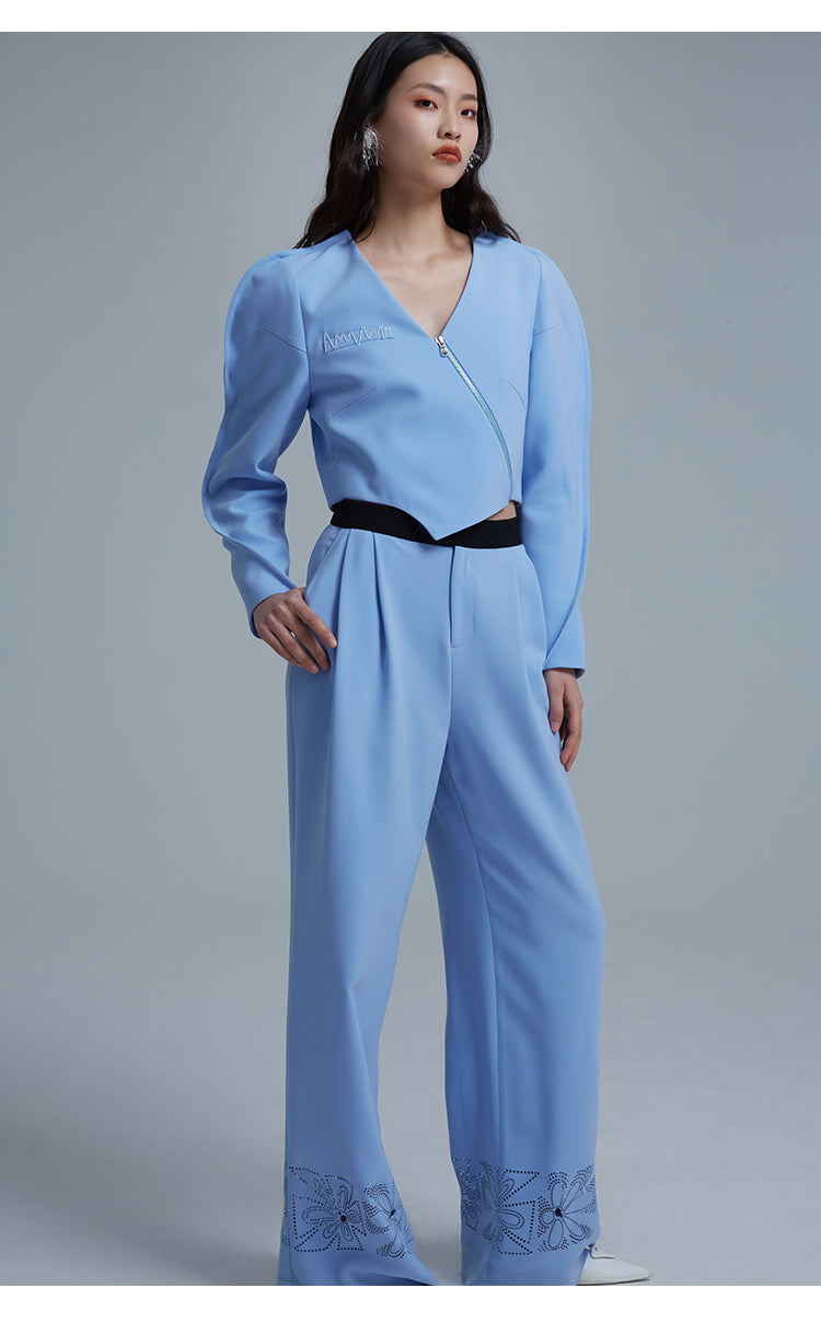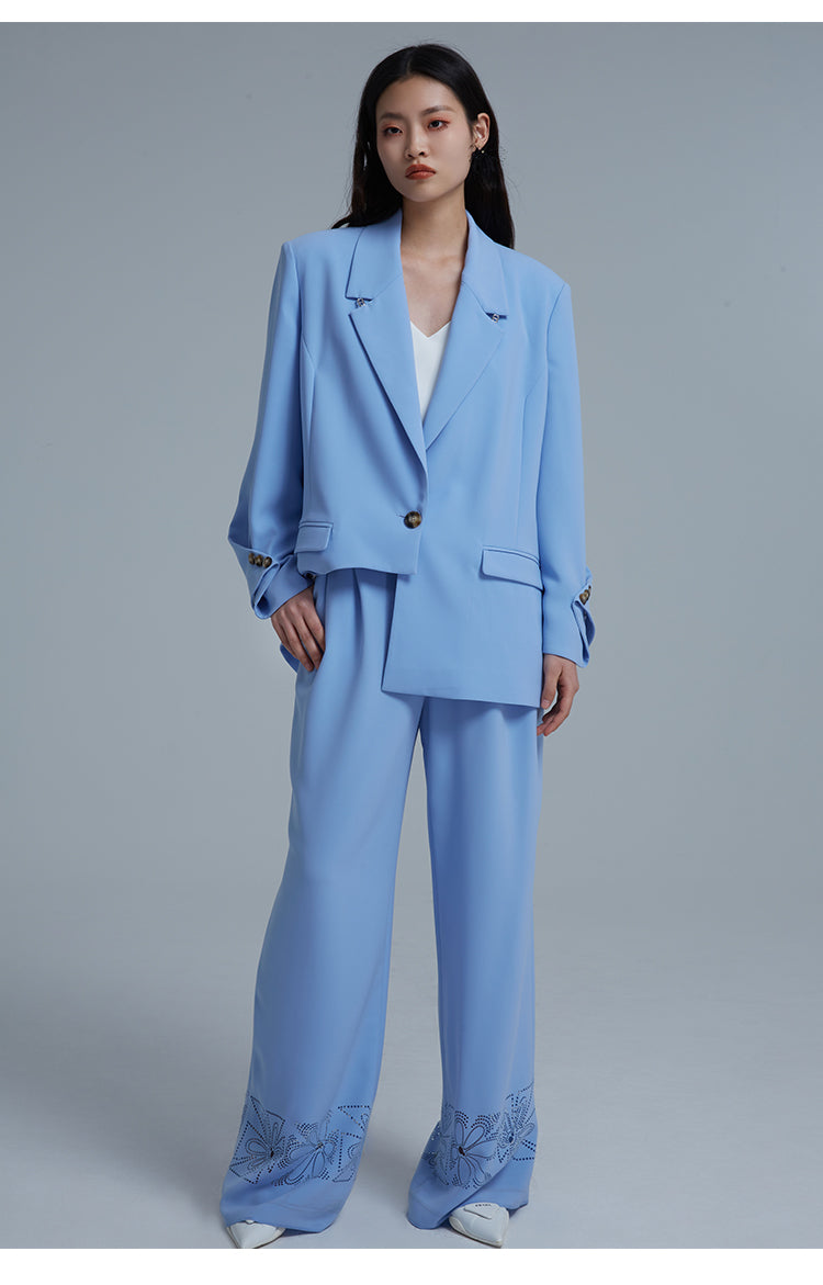 Set the tone for timeless sophistication with these LEDIM W blue suit-draped wide-leg pants - Arc. Featuring refined tailoring, this statement-making pair strikes the perfect balance between classic elegance and modern craftsmanship. Embrace timeless style and effortless chic with this luxe staple.