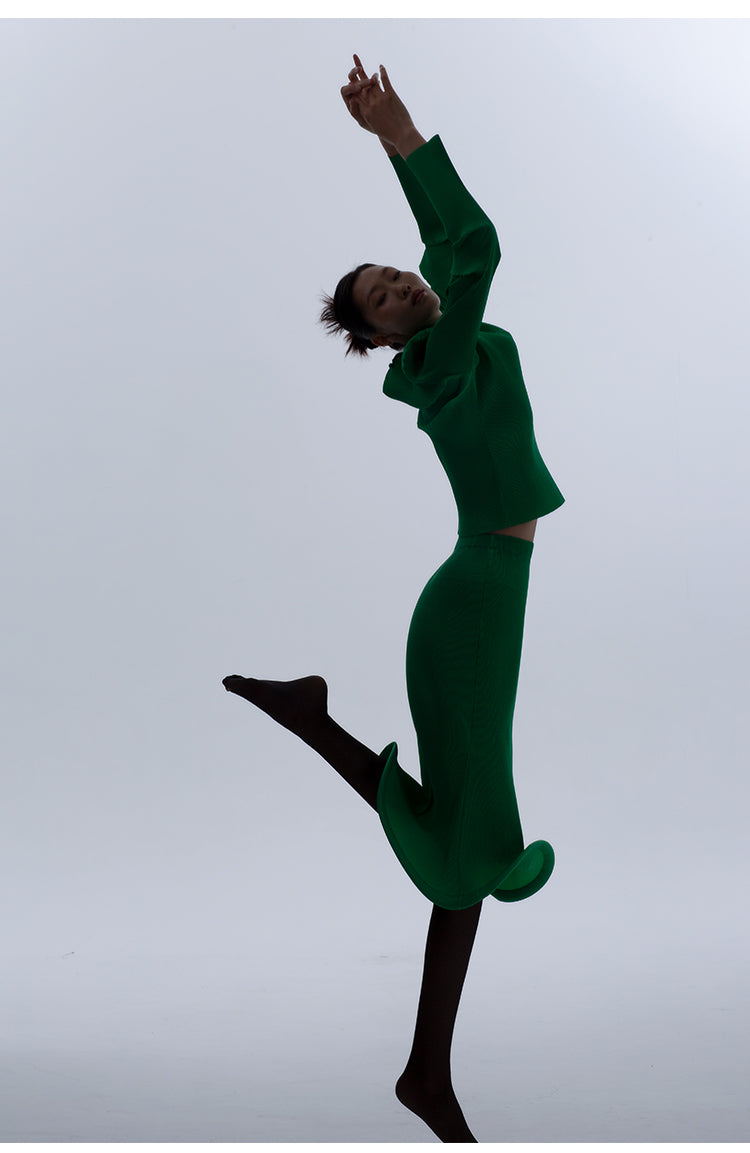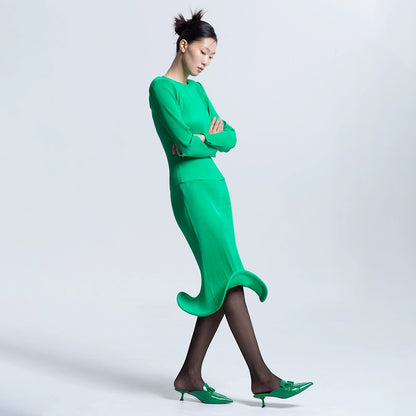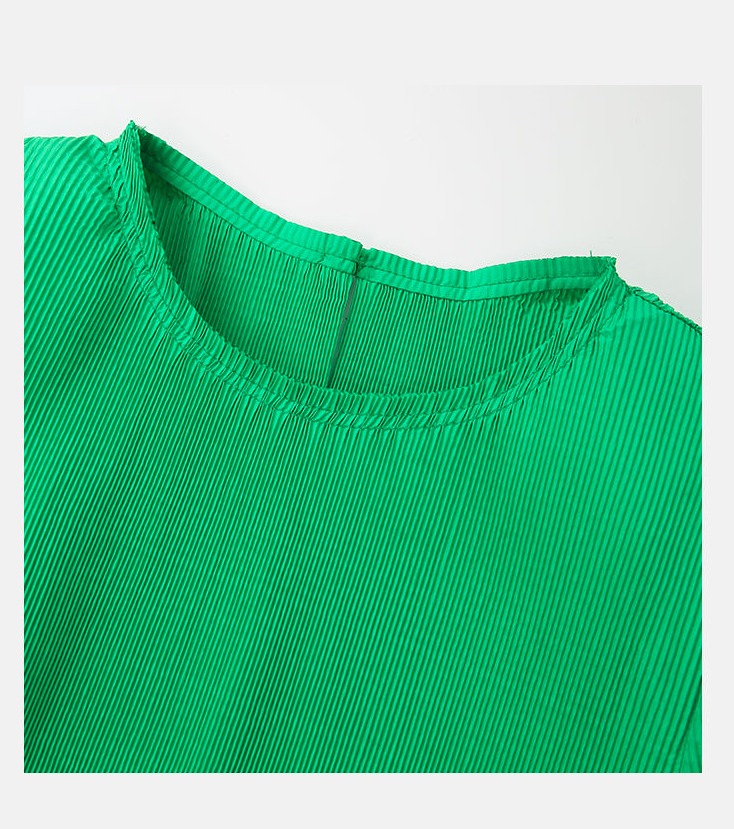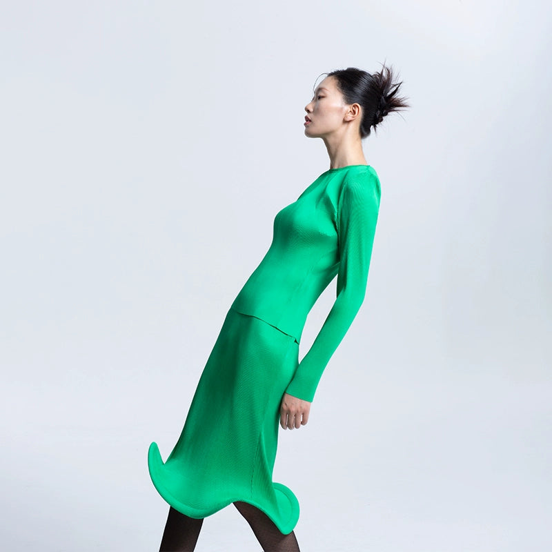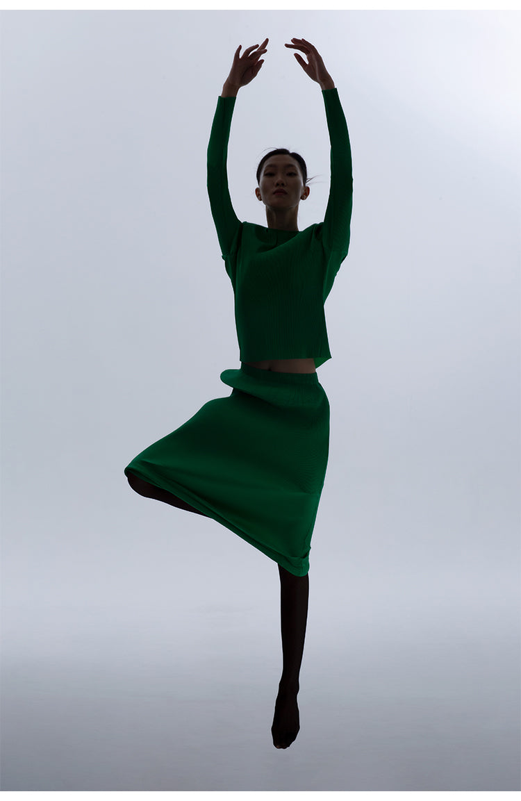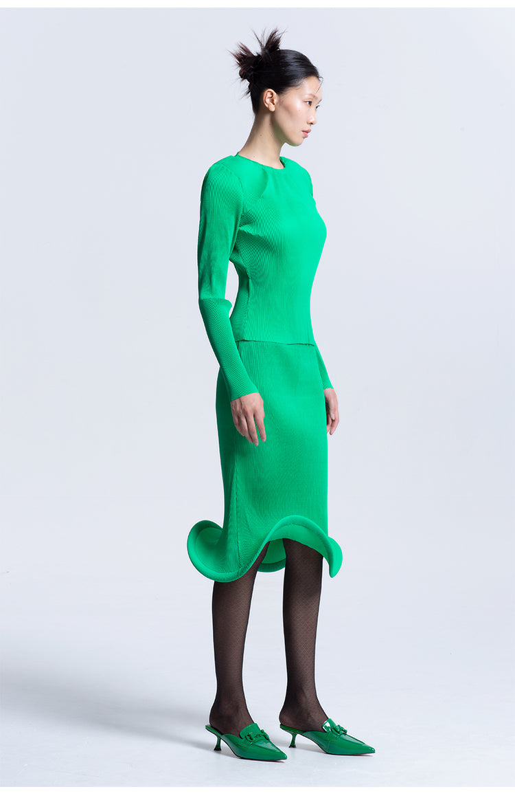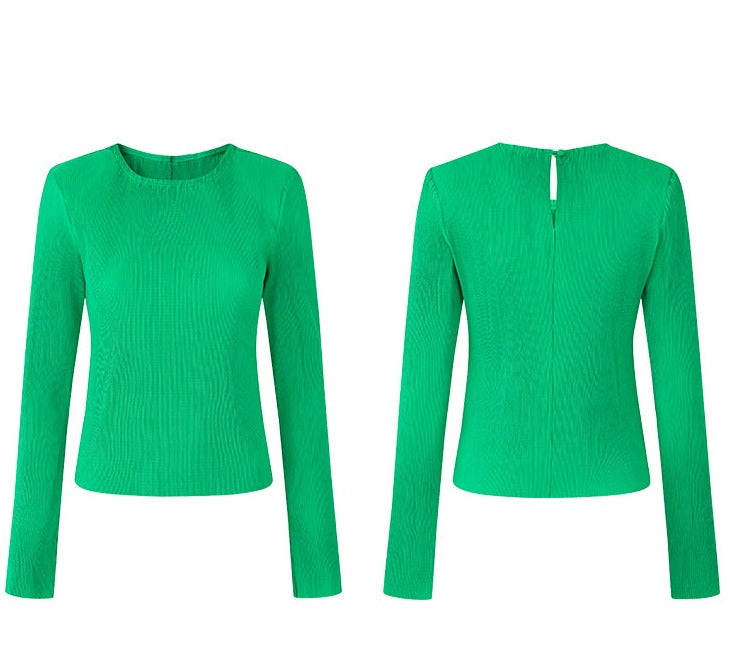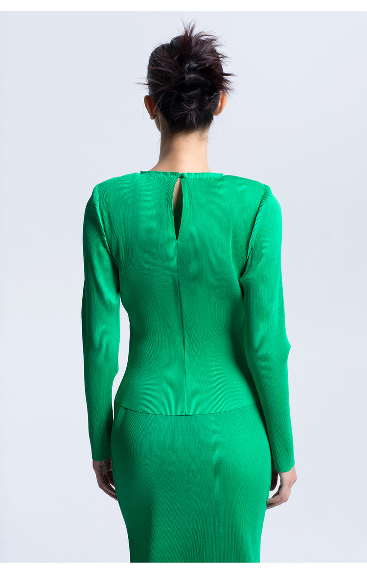 LEDIM W Green flowing crew neck pleated long sleeve top - Charm