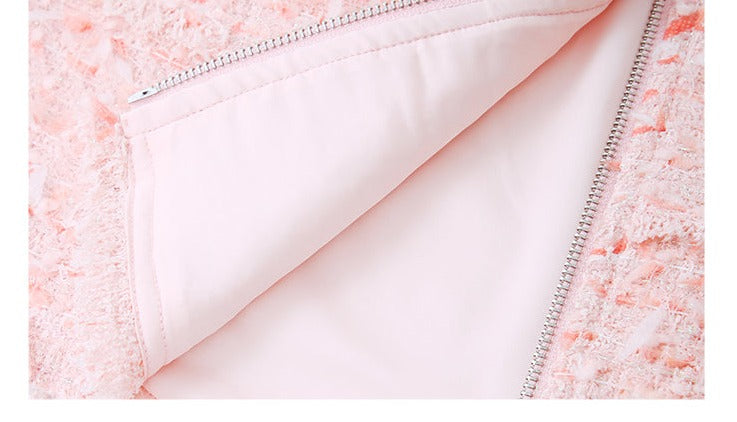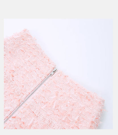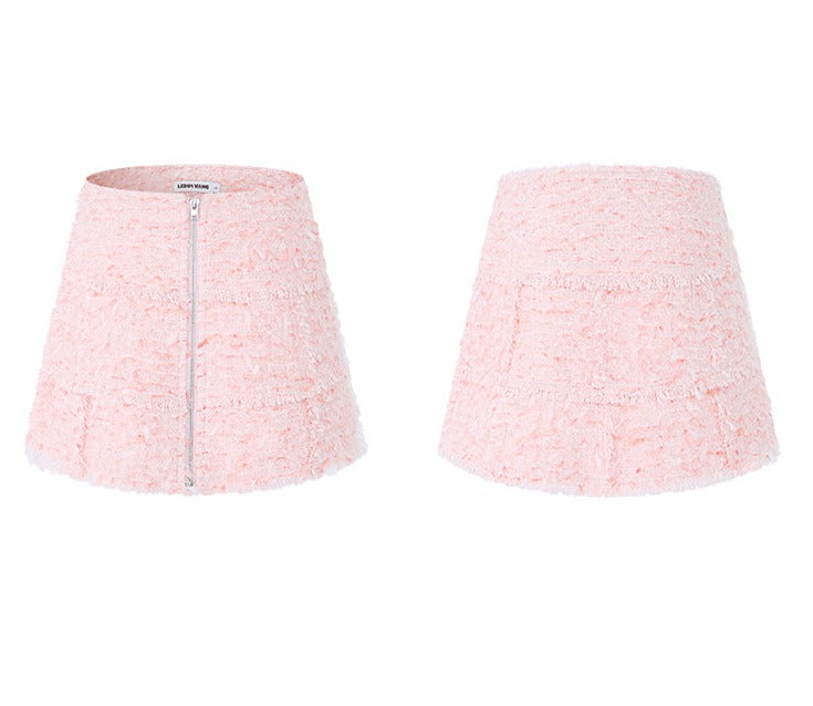 Introducing the LEDIM W pastel pink spliced tweed short skirt - Lippi, a timeless piece made with exquisite detail. Crafted with luxurious pastel pink tweed, this mini skirt features a high waist and chic silhouette to accentuate your figure and keep you looking stylish and beautiful. Not only fashionable, the skirt is also dashing and adorable, perfect for a trendy and sophisticated look. Make a statement in the LEDIM W pastel pink spliced tweed short skirt - Lippi.