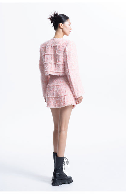LEDIM W pastel pink spliced tweed short skirt - Lippi