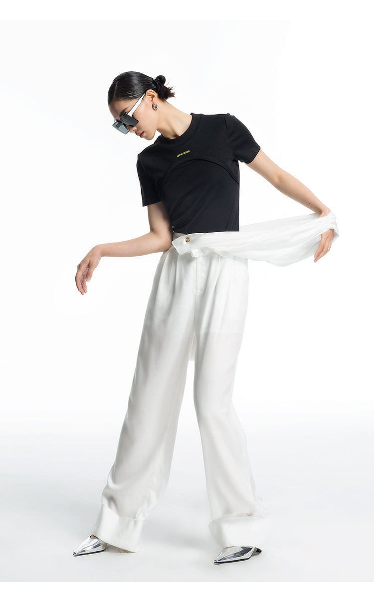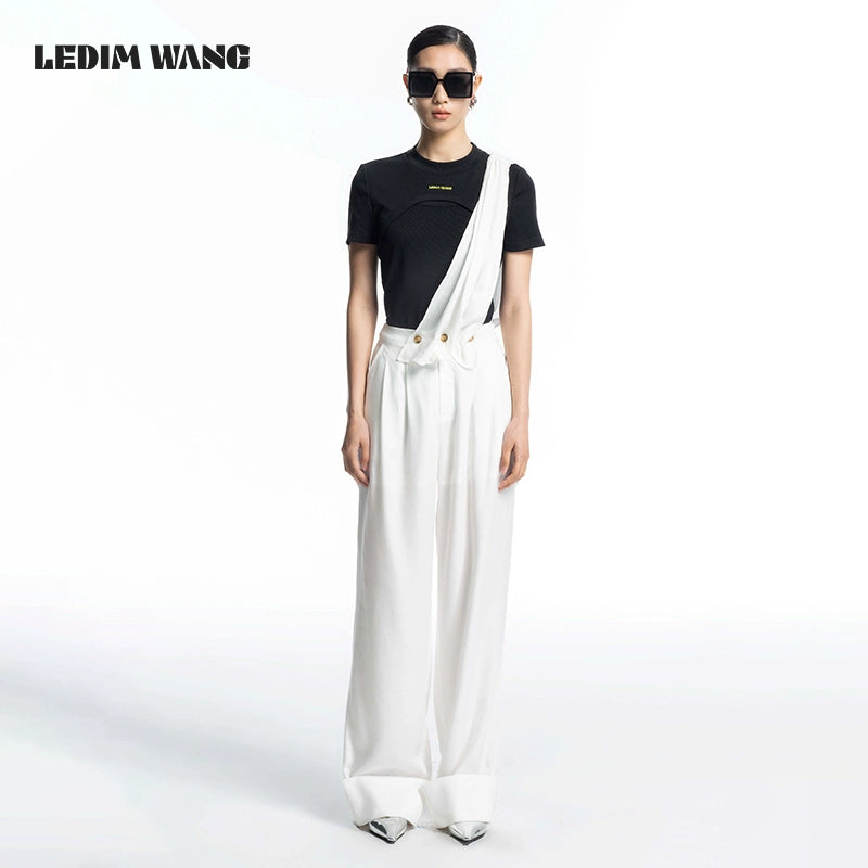 LEDIM W White single thin wide leg loose straight womens pants trouser - Kara