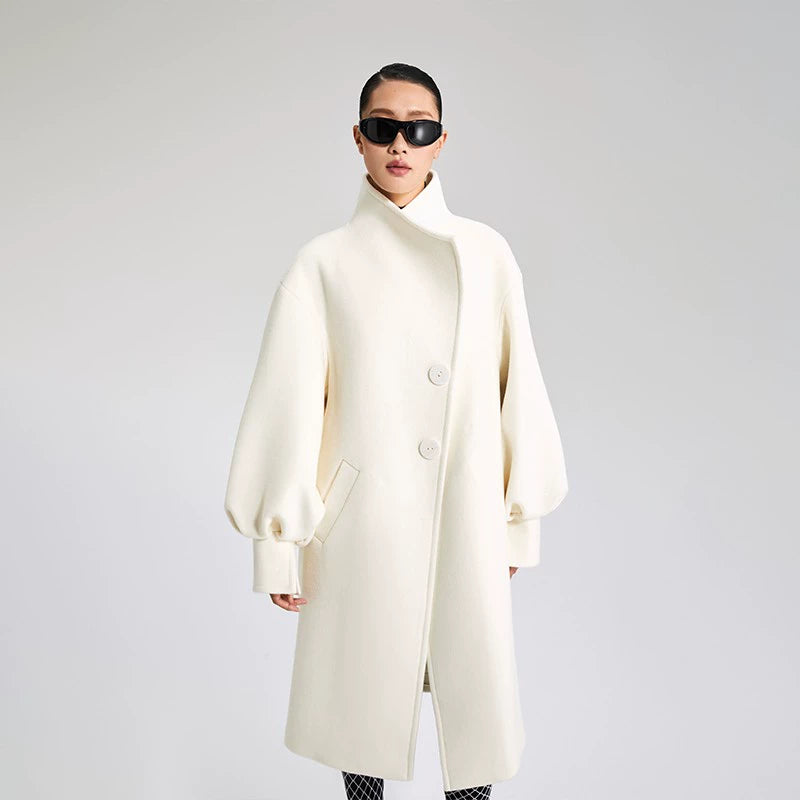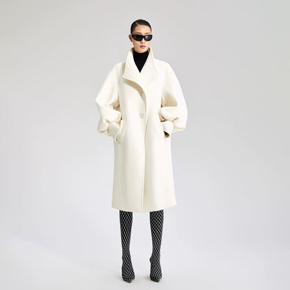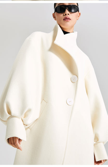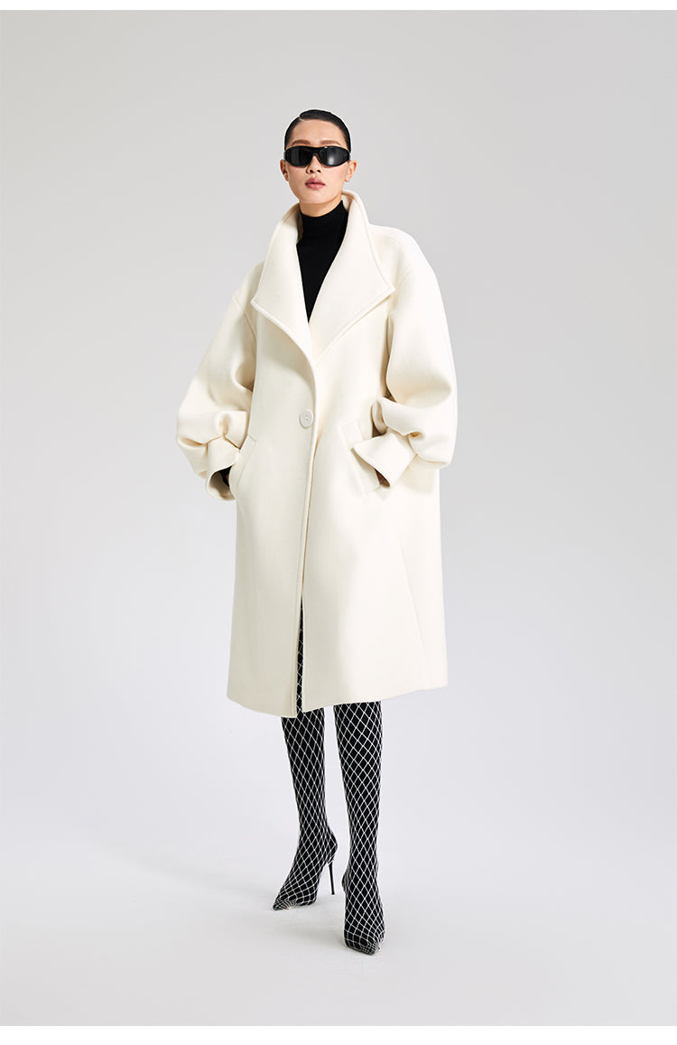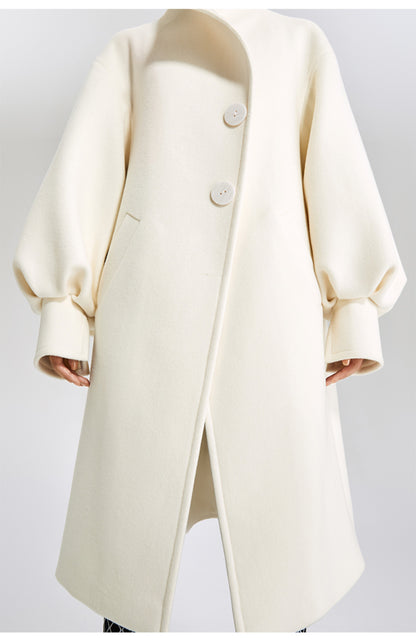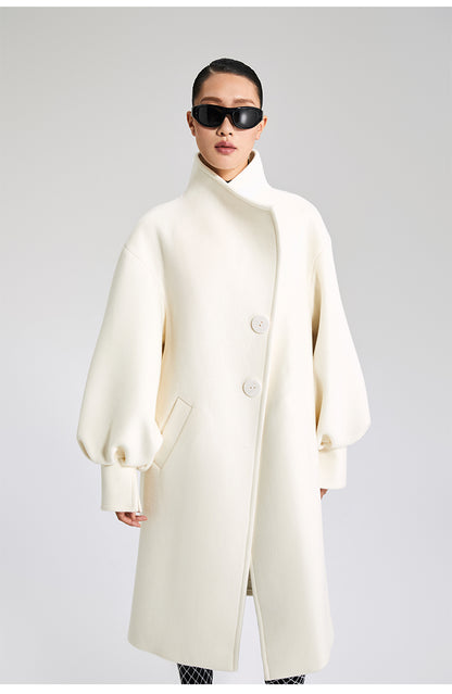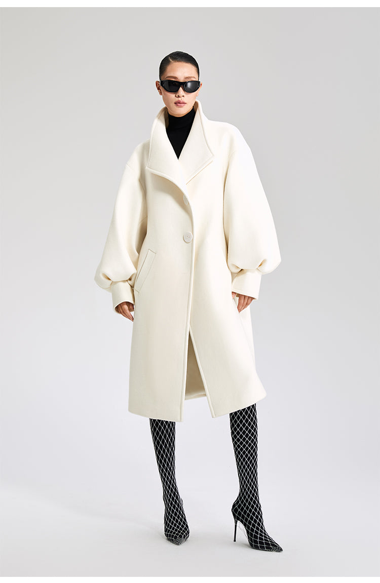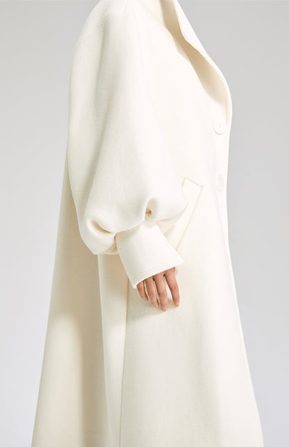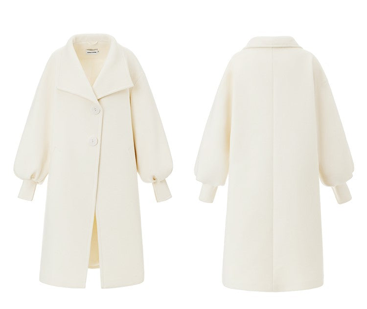 LEDIM W wool white balloon sleeve long winter coat-SIGNER