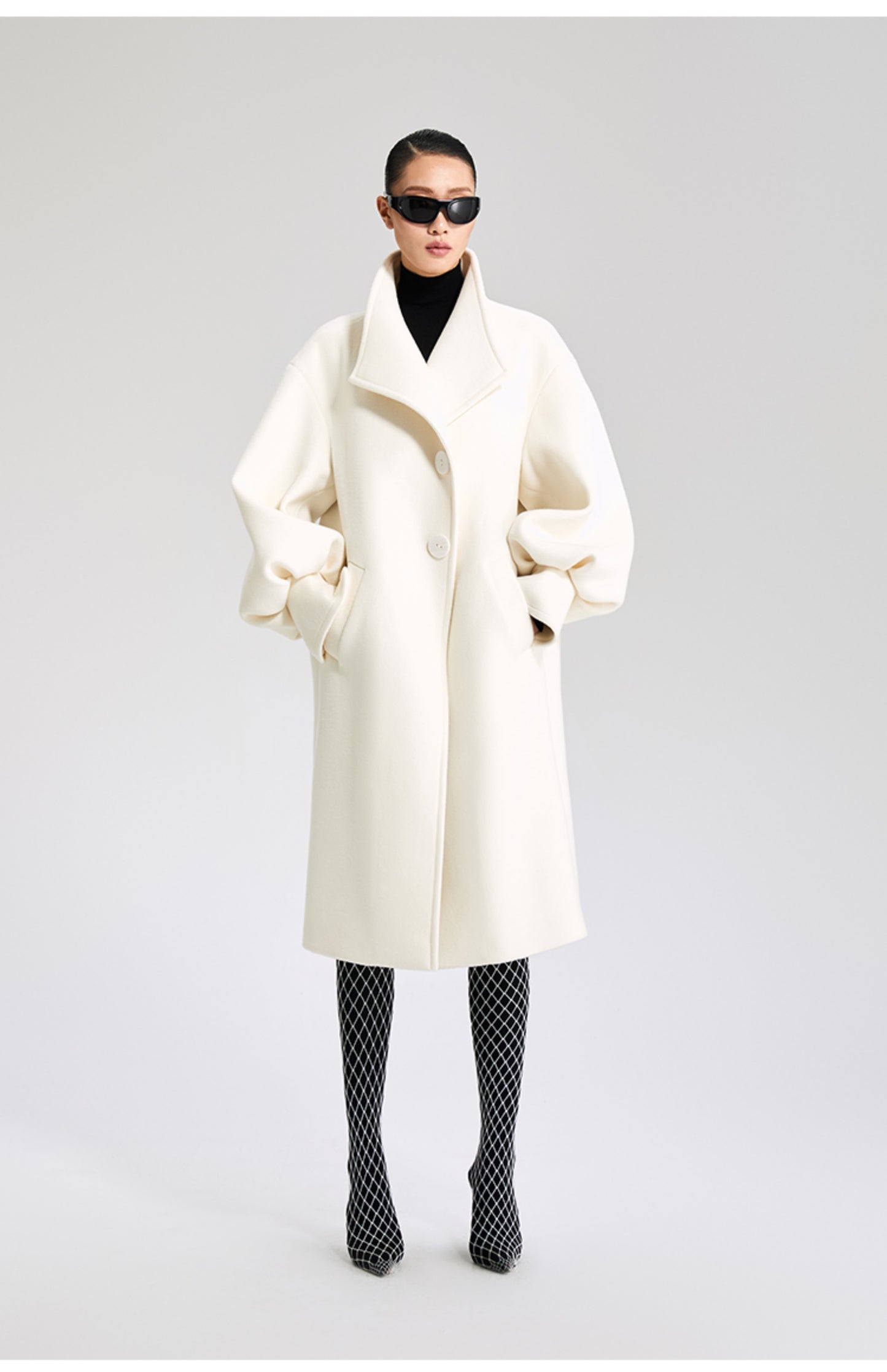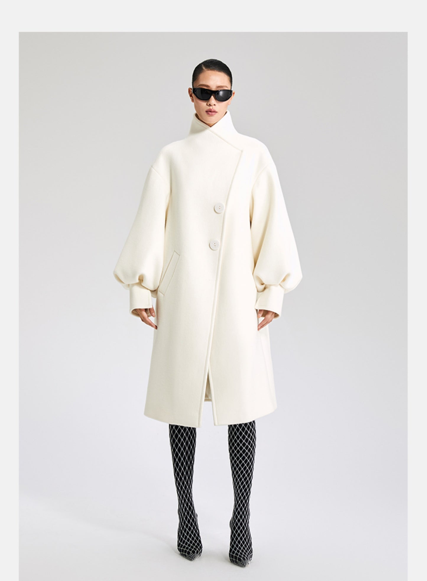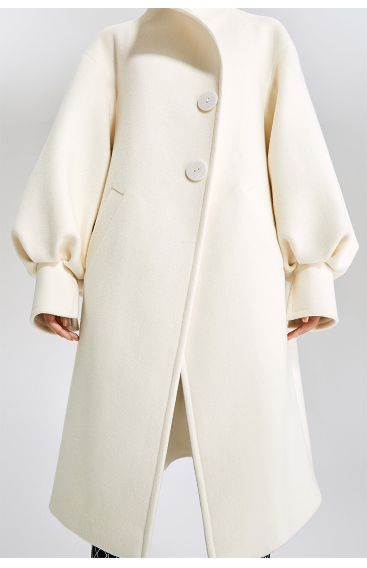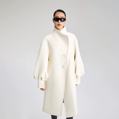LEDIM W wool white balloon sleeve long winter coat-SIGNER