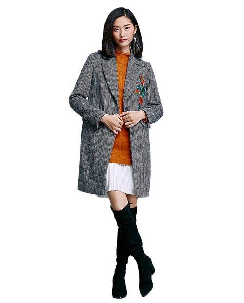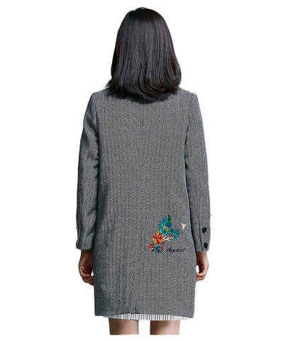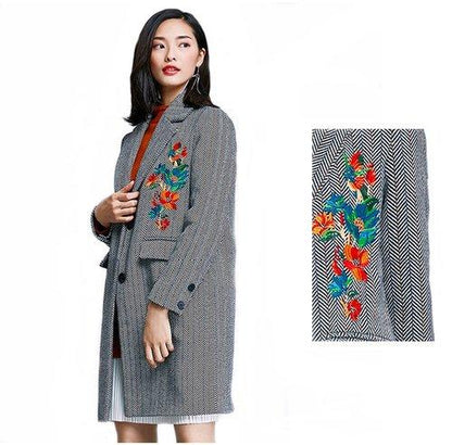 Limited edition designer unique embroidered herringbone fall winter long high fashion quality coat jacket-- Akiko