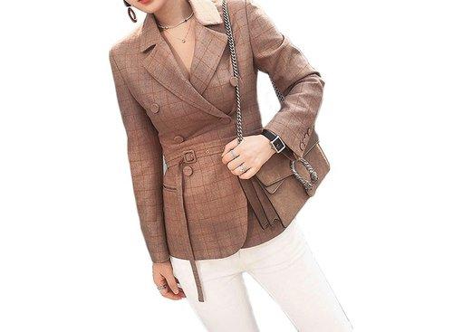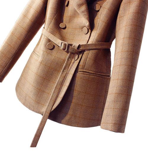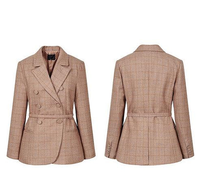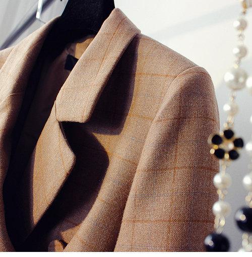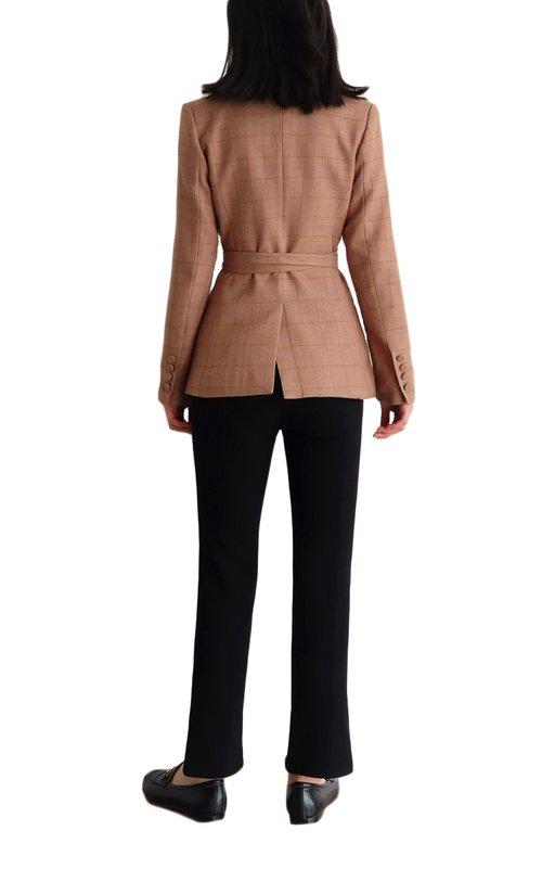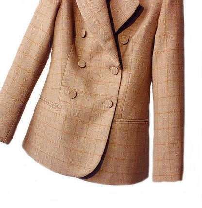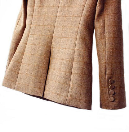 Vintage inspired plaid high fashion nude tan brown work cocktail blazer- Kiko